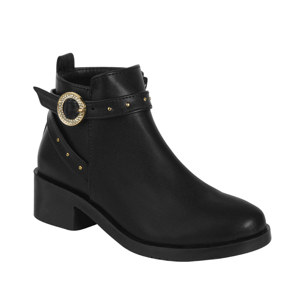 BOTÍN DE PISO NEGRO CON HEBILLA Y APLICACIONES 54109