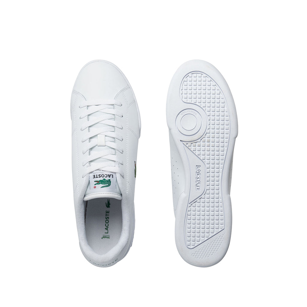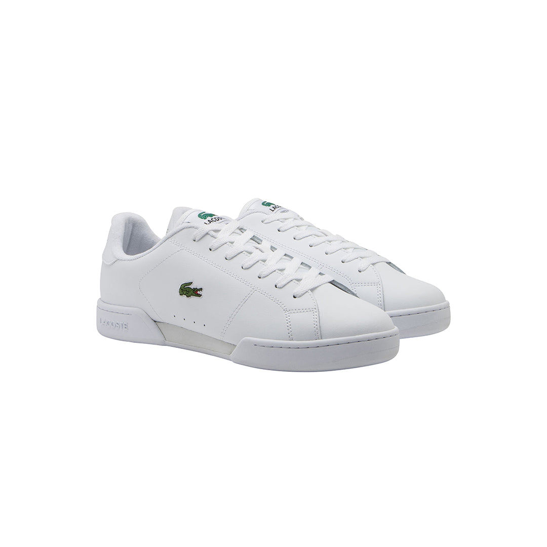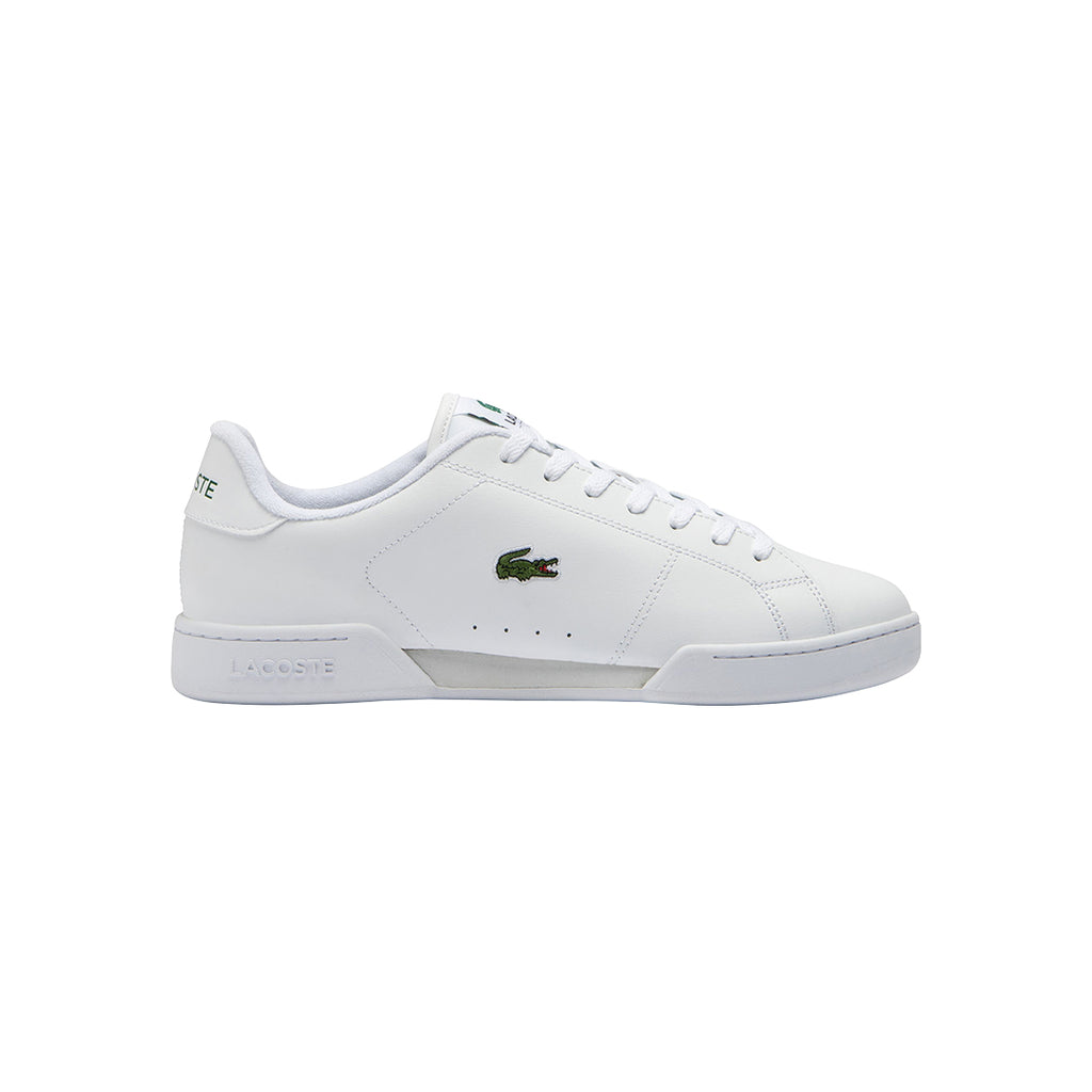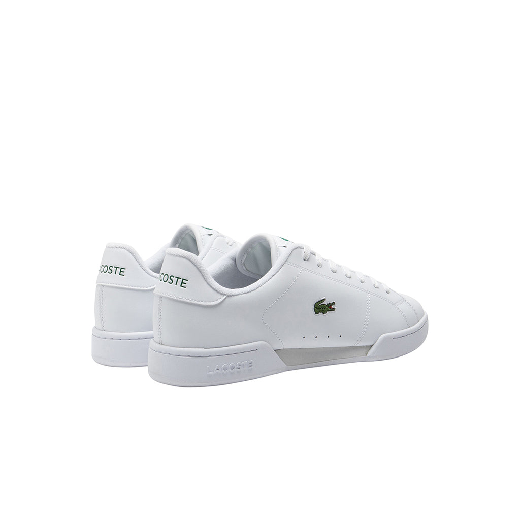Tenis Lacoste choclo blanco para caballero, con logo lateral y cordón ajustable. Corte en piel que aporta resistencia y un estilo clásico y versátil.