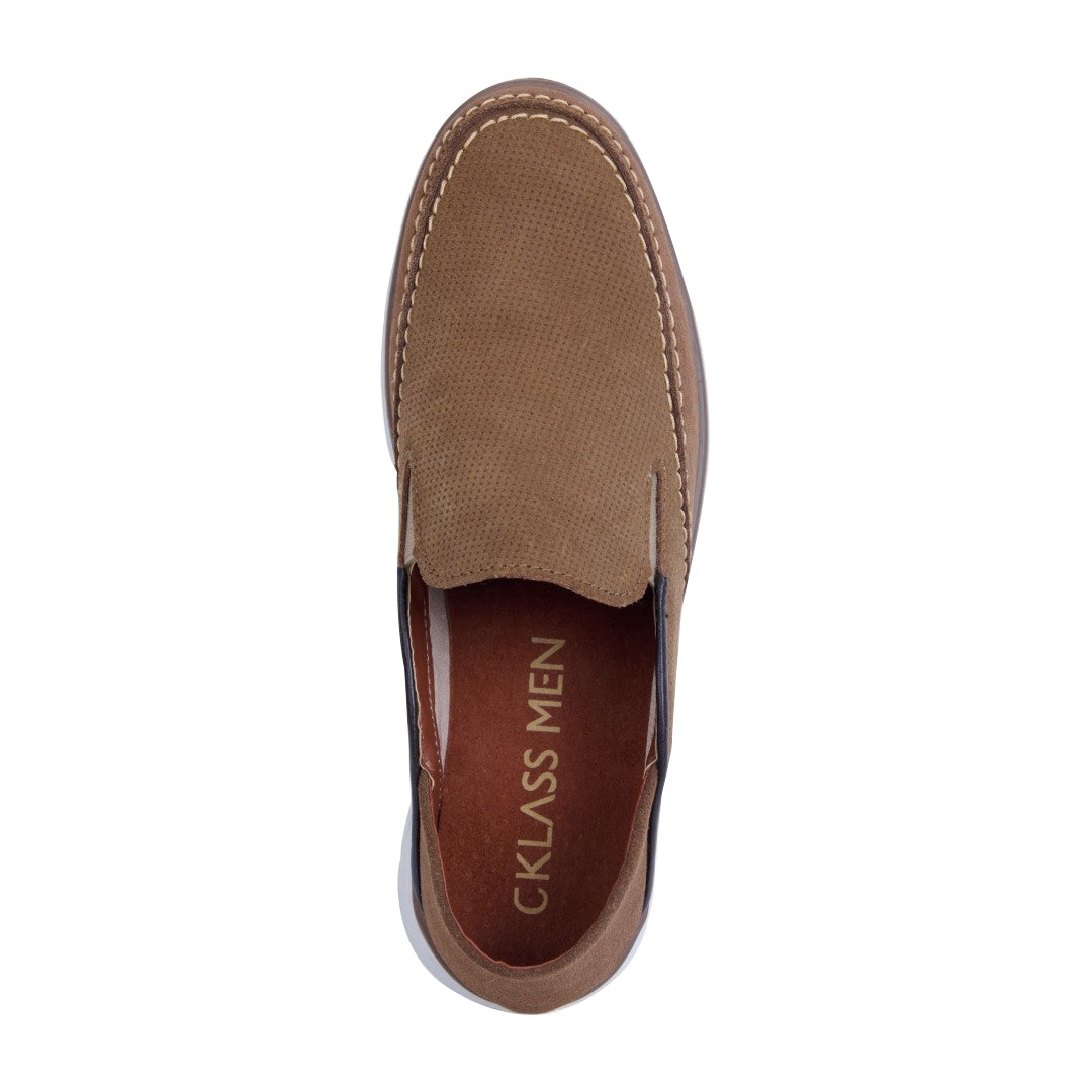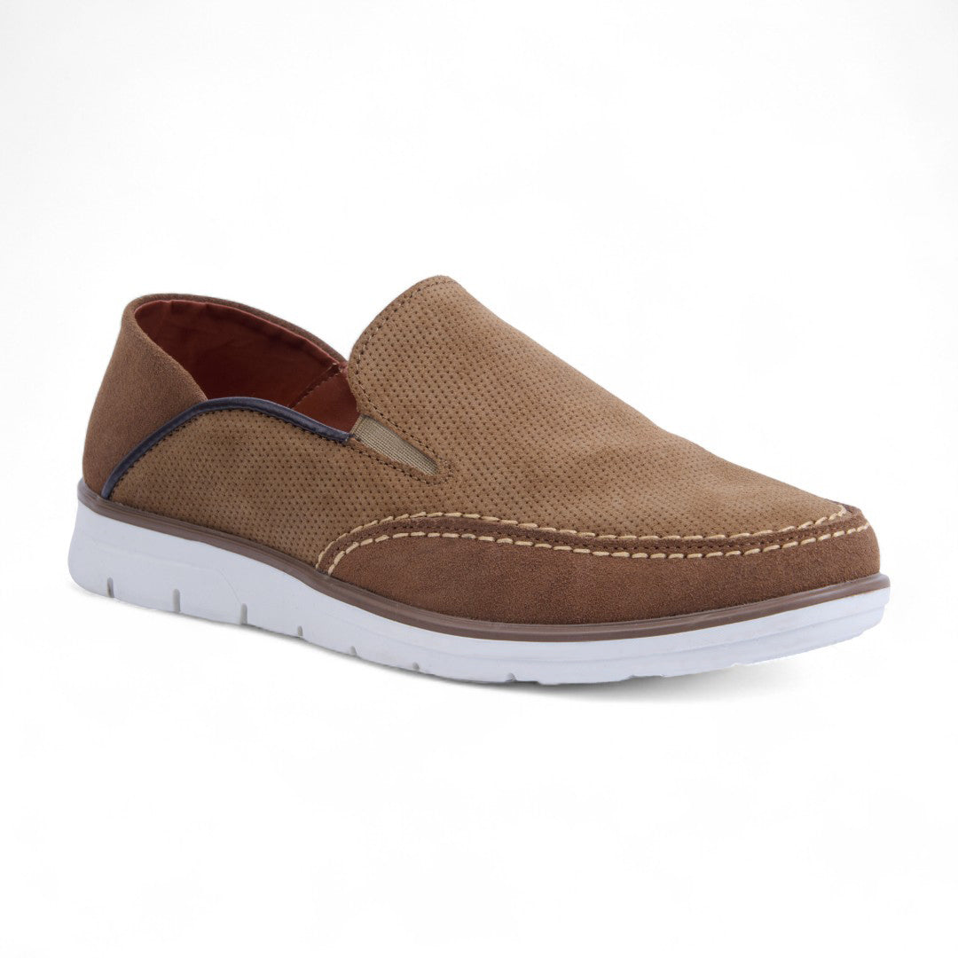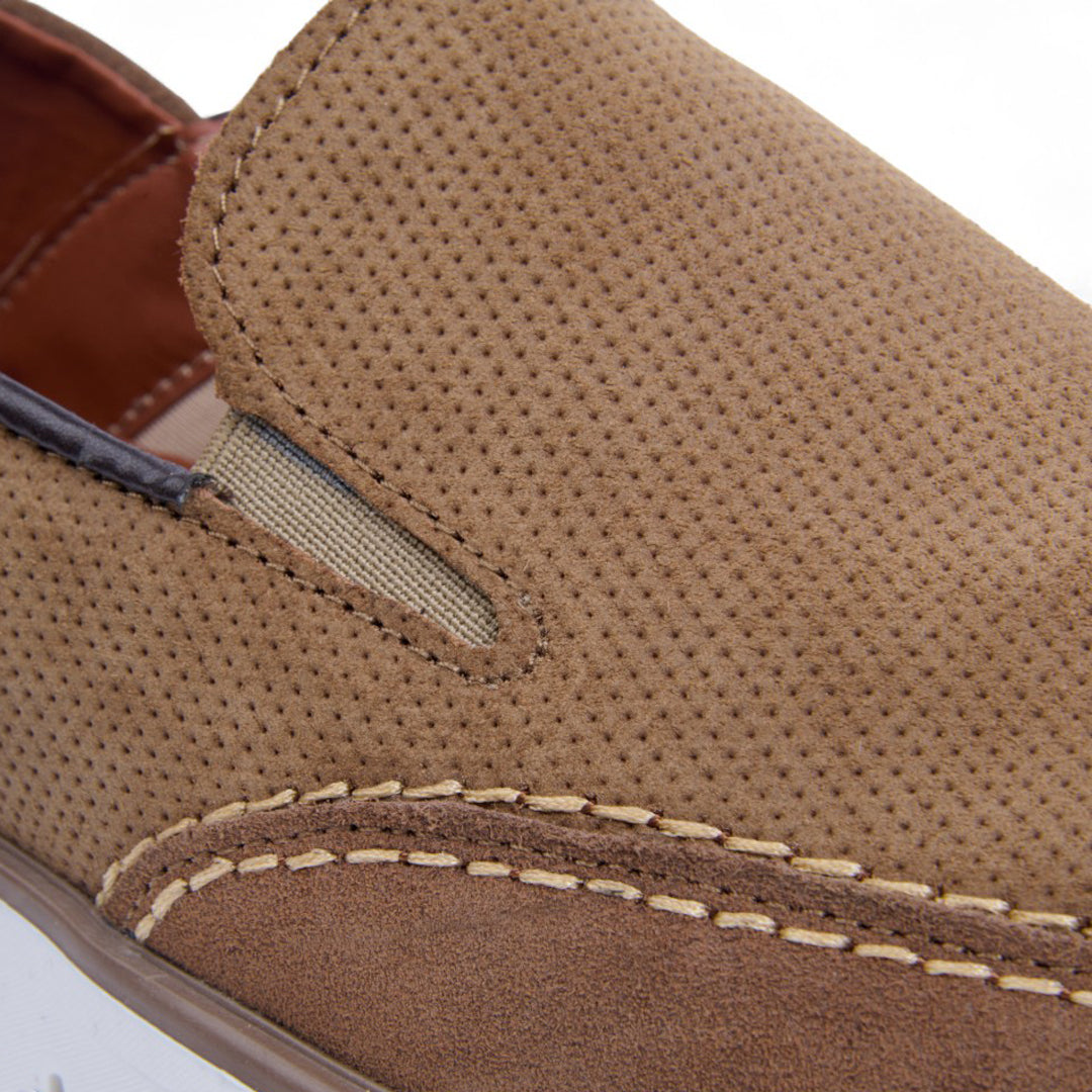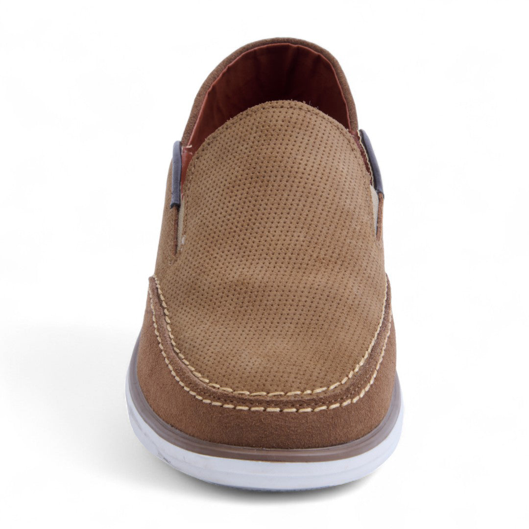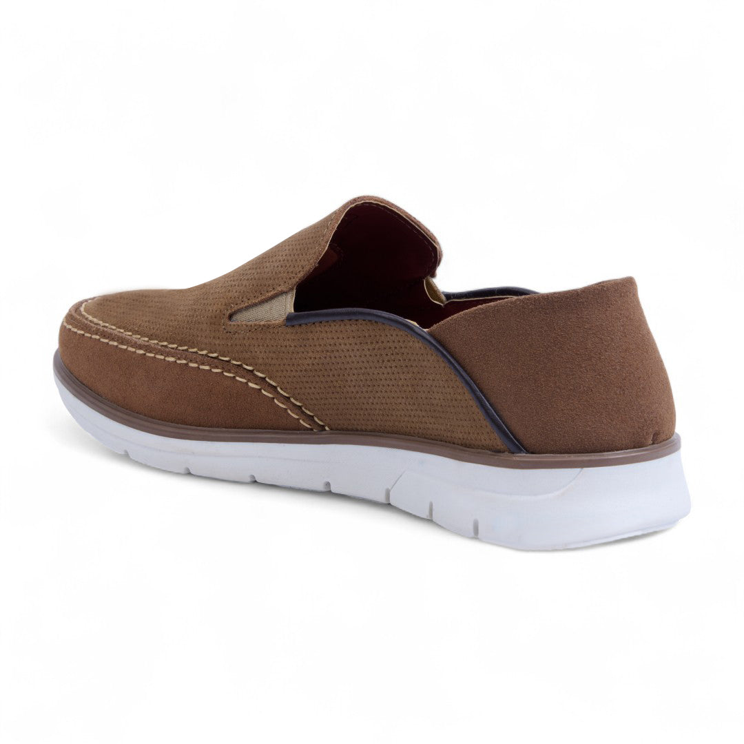 Mocasín de piso grabado con acabado tipo gamuza, plantilla porcina para mayor comodidad. Color miel versátil y elegante. Ideal para outfits casuales, oficina y paseos con estilo sofisticado y femenino.