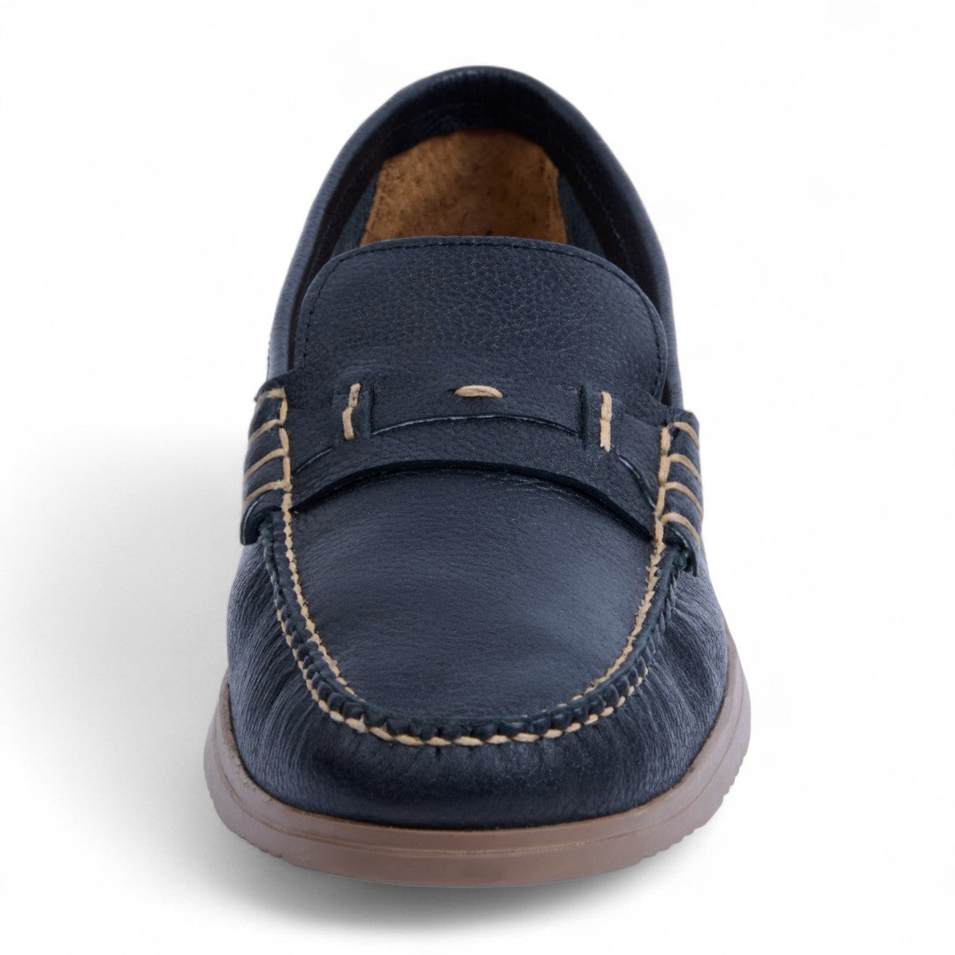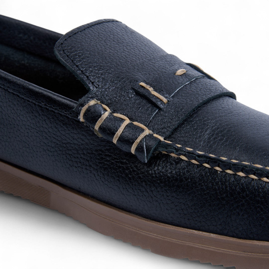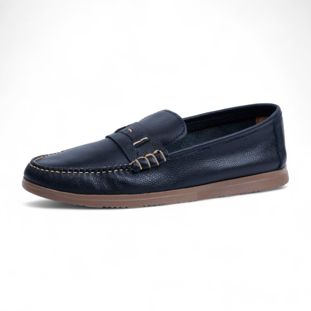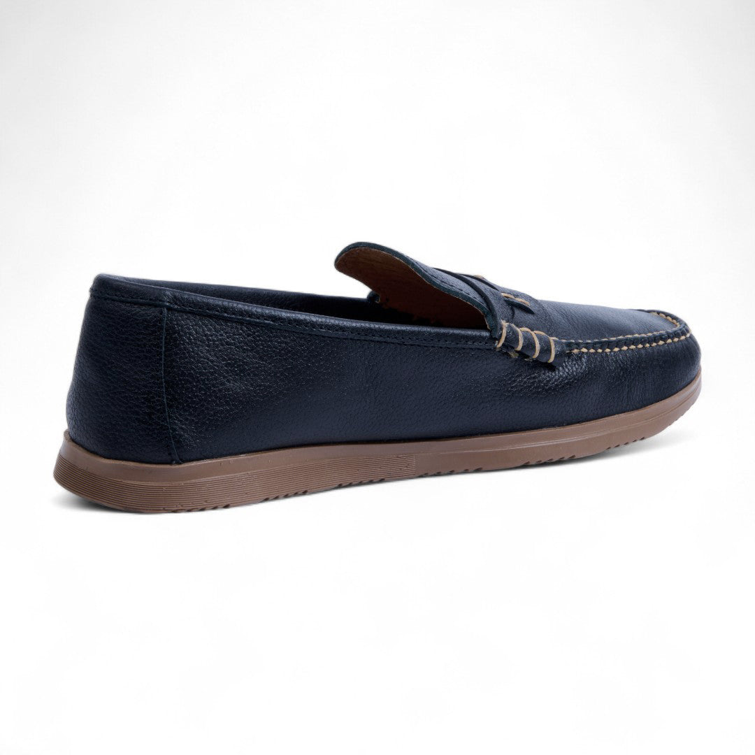 Mocasín color negro de piso, confeccionado en piel genuina con antifaz clásico y hebilla metálica decorativa. Cuenta con plantilla de piel porcina que brinda suavidad y transpirabilidad, además de una suela firme para mayor durabilidad. Ideal para uso diario o atuendos formales que combinan elegancia y comodidad.