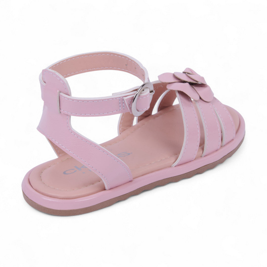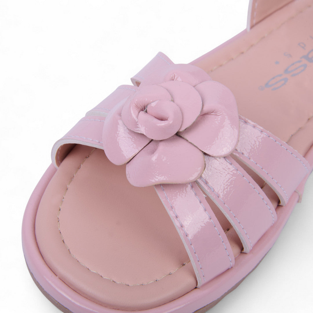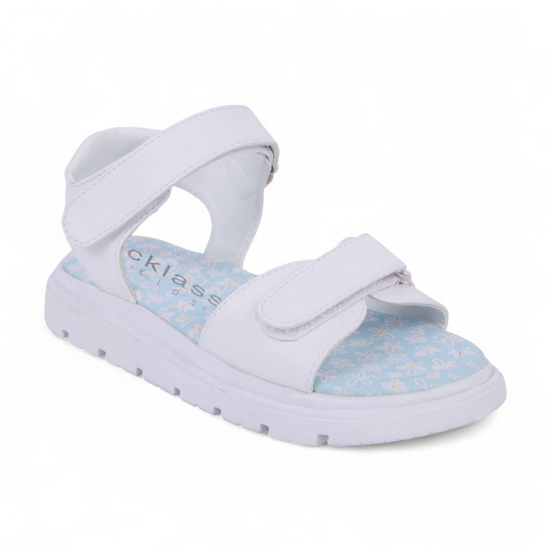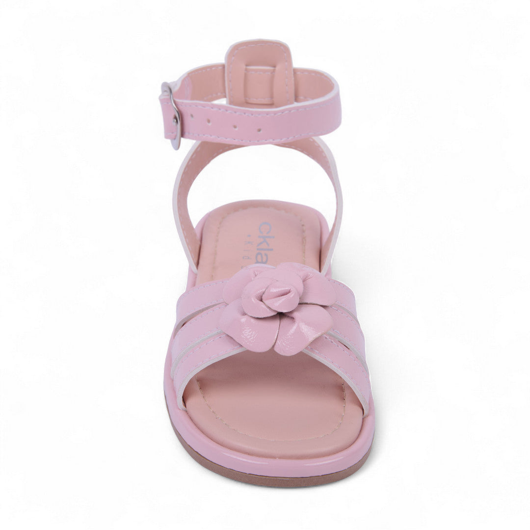 Dúo de sandalias de piso en tonos rosa y blanco con diseños encantadores. El modelo blanco cuenta con látigos ajustables con cierre de contactel, mientras que el modelo rosa incluye un delicado detalle floral y pulsera con hebilla metálica. Fabricadas en material sintético con plantilla suave, ideales para niñas que buscan comodidad y estilo todos los días.