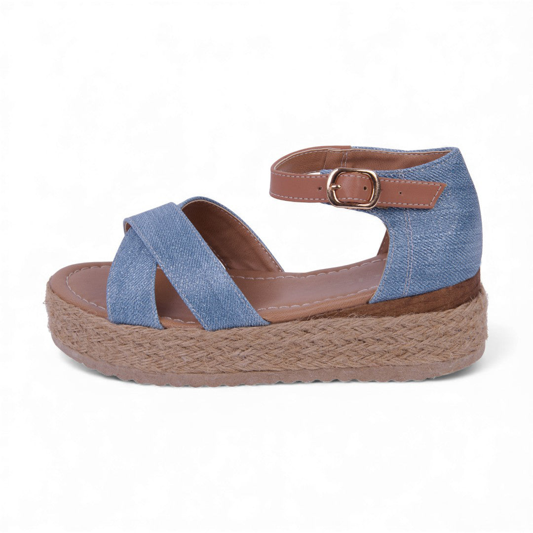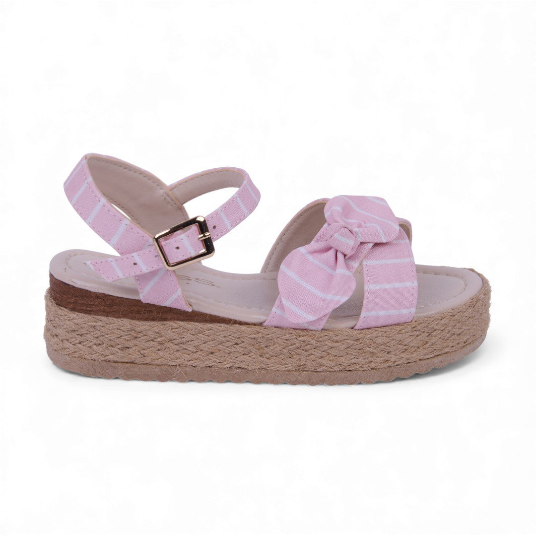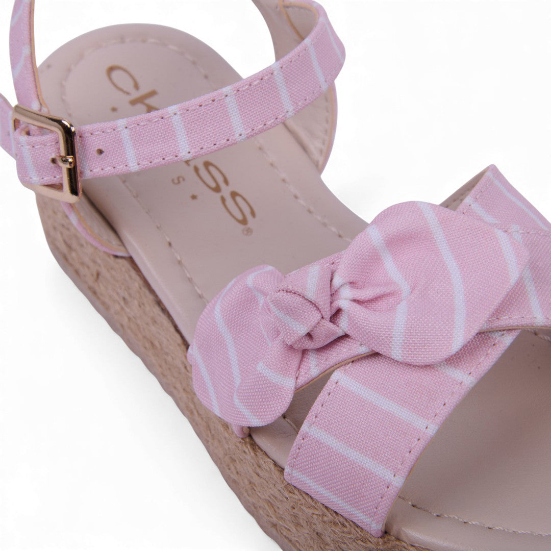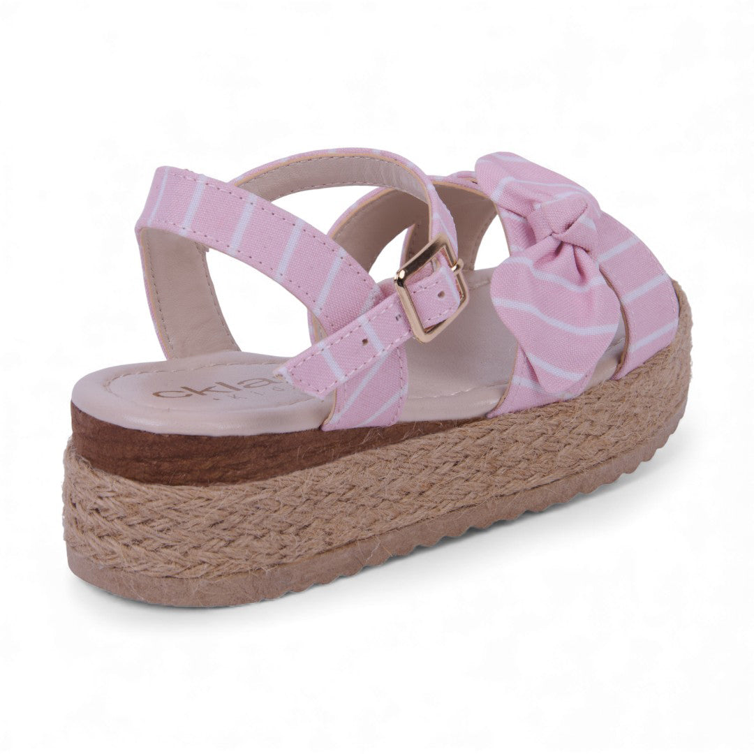 Dúo de sandalias de piso azul y rosa con moño decorativo, látigos cruzados y pulsera ajustable; diseño femenino, cómodo y ligero con plantilla textil.