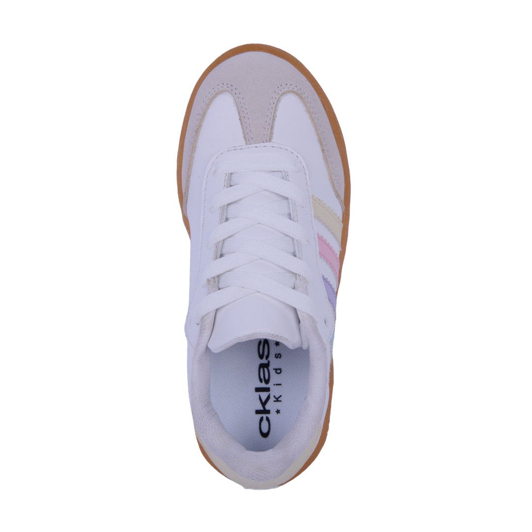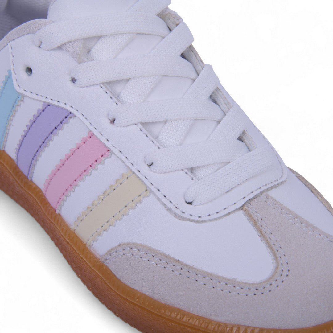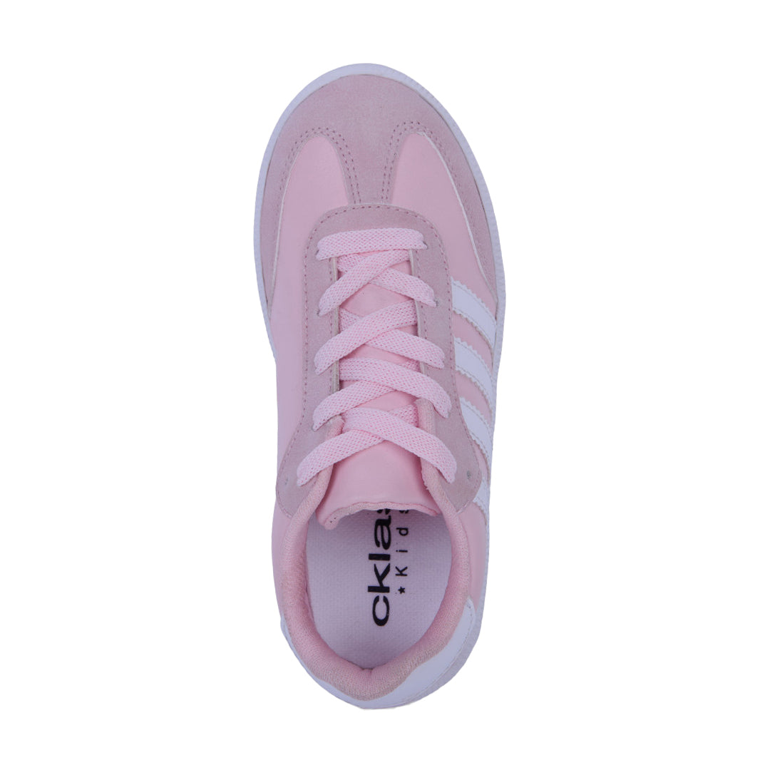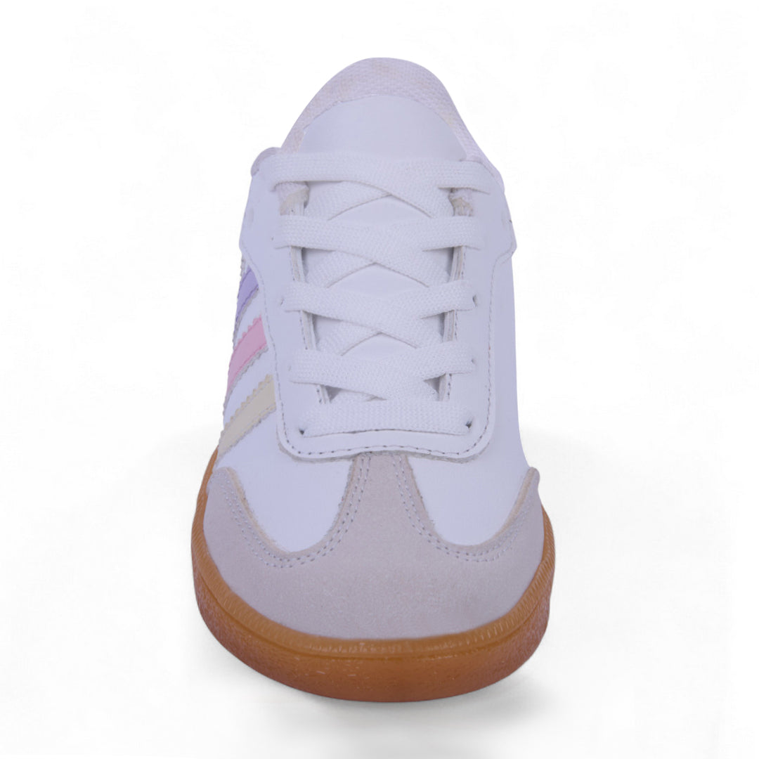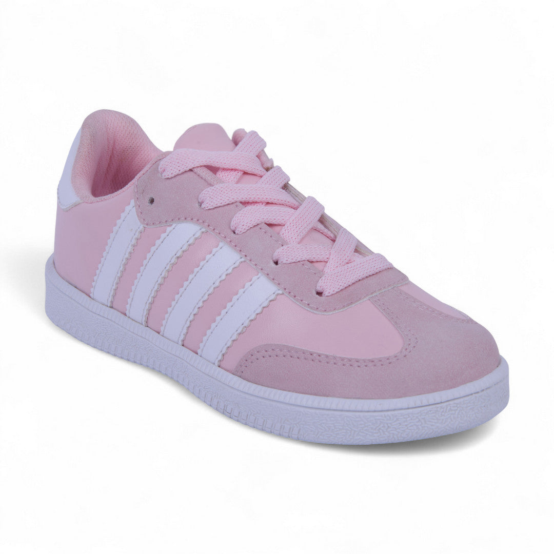 Dúo de tenis casual en colores rosa y multicolor, con cintas y diseño ligero ideal para uso diario, looks urbanos o combinaciones juveniles.