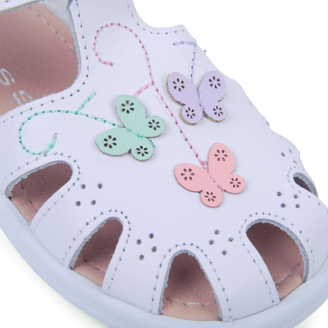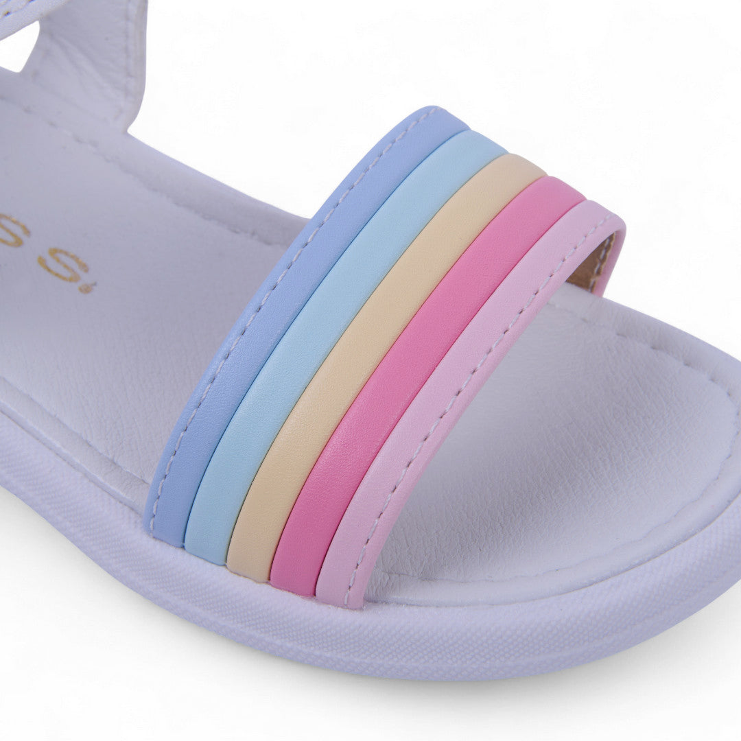 Dúo de sandalias de piso en blanco y multicolor con detalles decorativos en empeine y punta, suela ligera y diseño fresco ideal para uso diario.