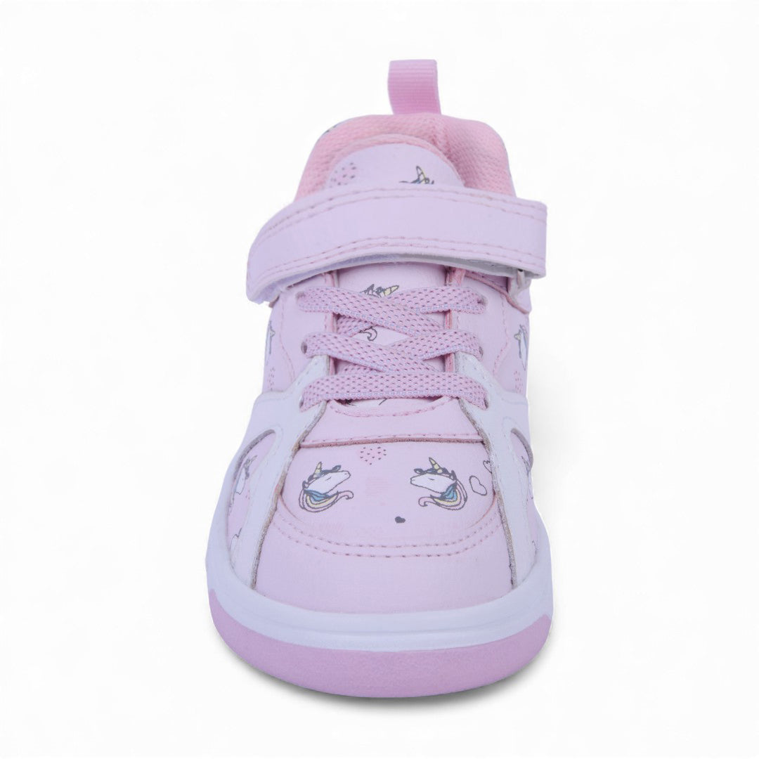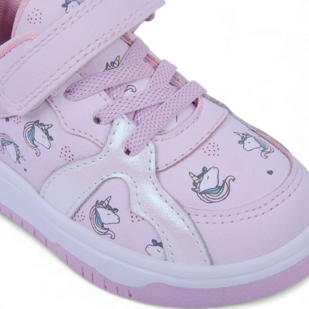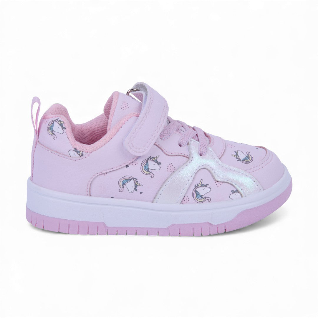 Dúo de tenis casual rosa y lila con detalles en contraste; modelo rosa estampado con cintas elásticas y velcro, modelo lila con diseño moderno y plantilla textil. Estilo fresco, juvenil y cómodo.