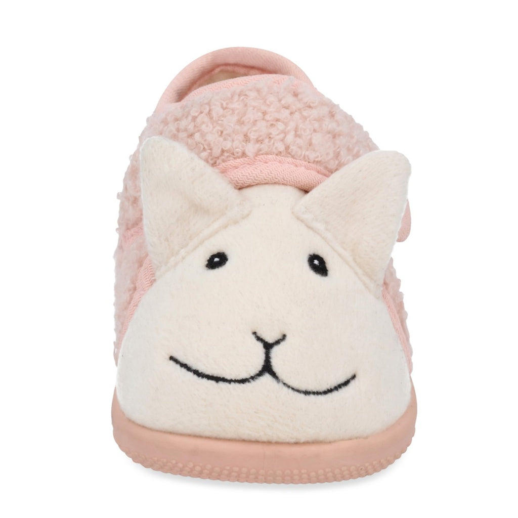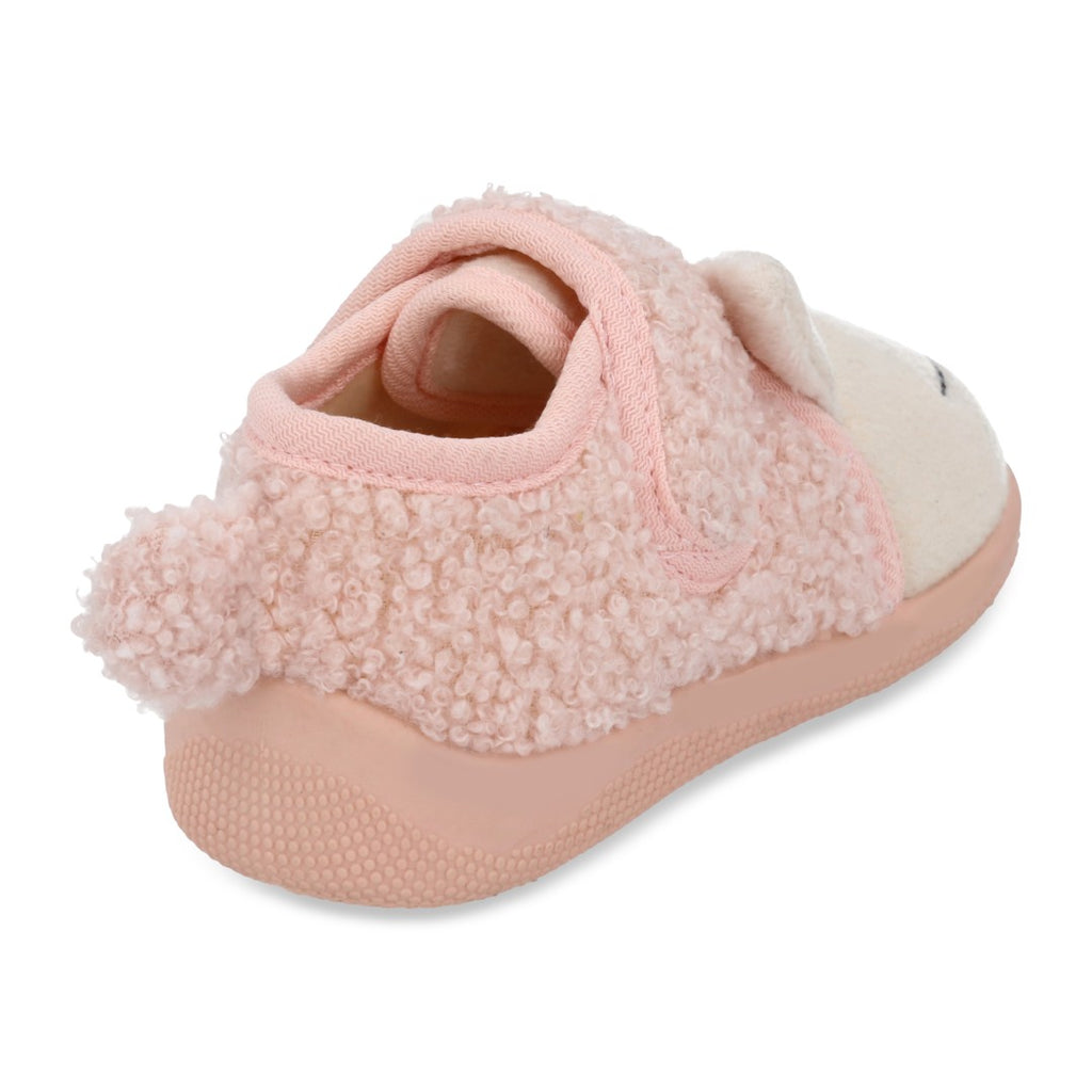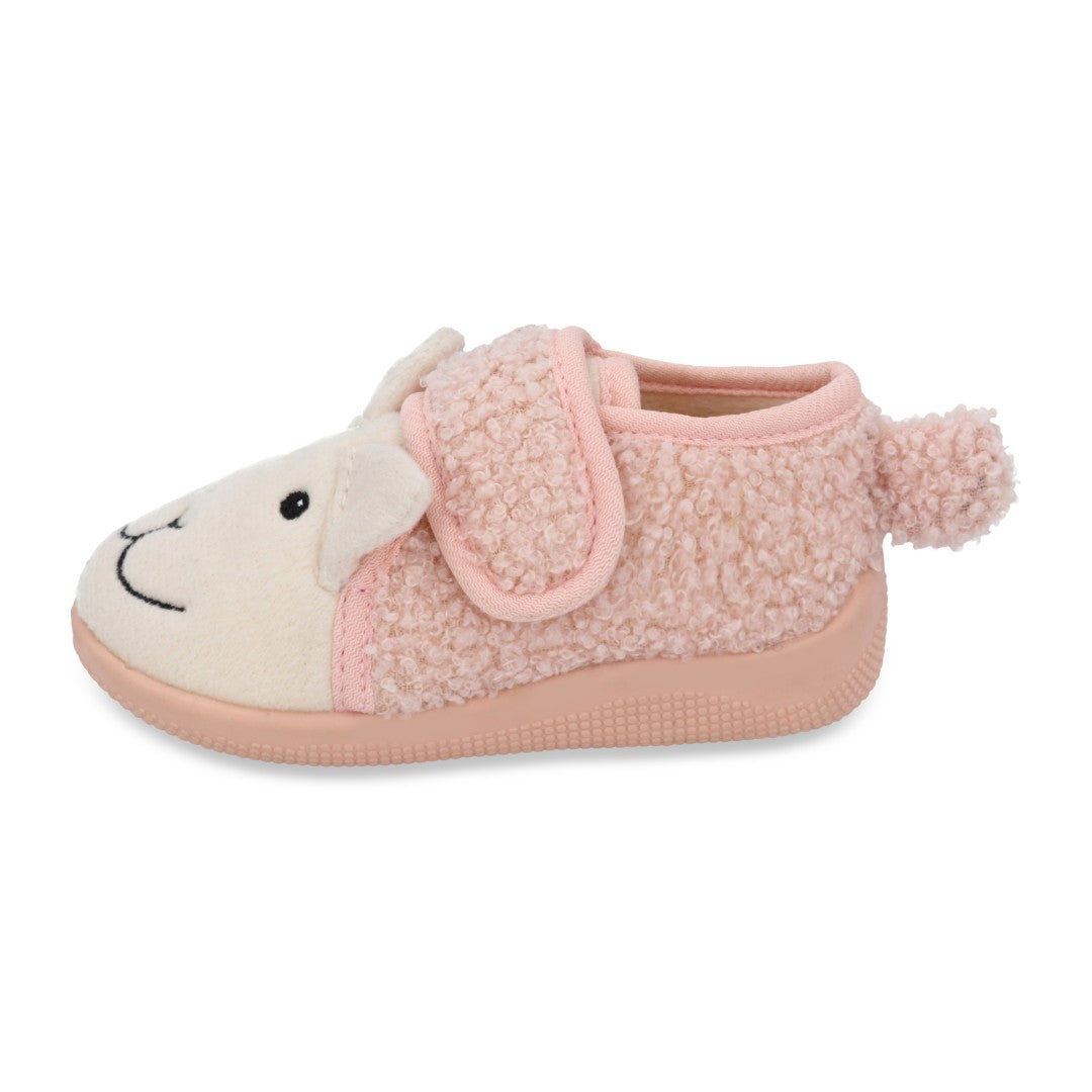Pantufla de piso color rosa con forma de borrego, con contactel para mejor ajuste. Plantilla: Textil.