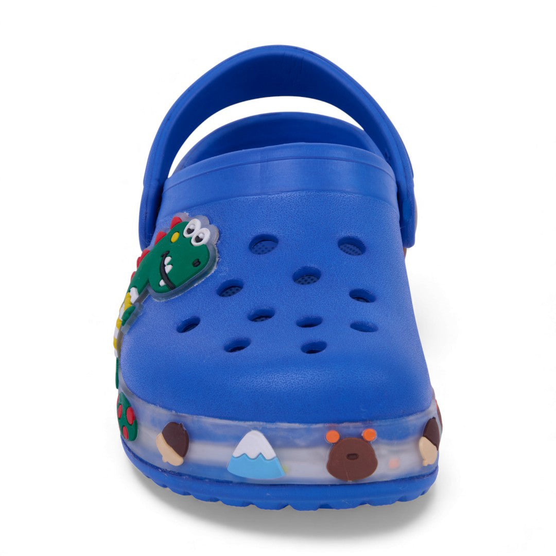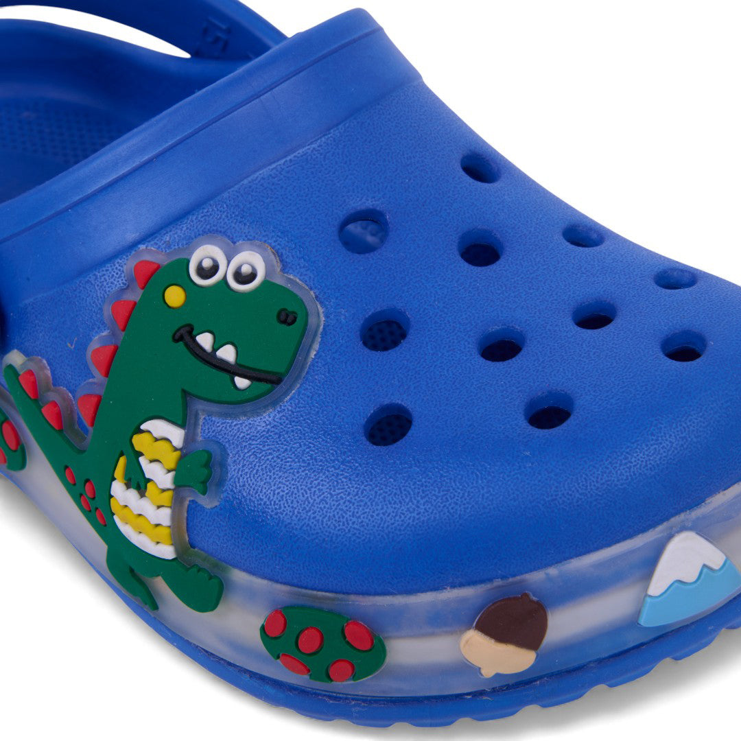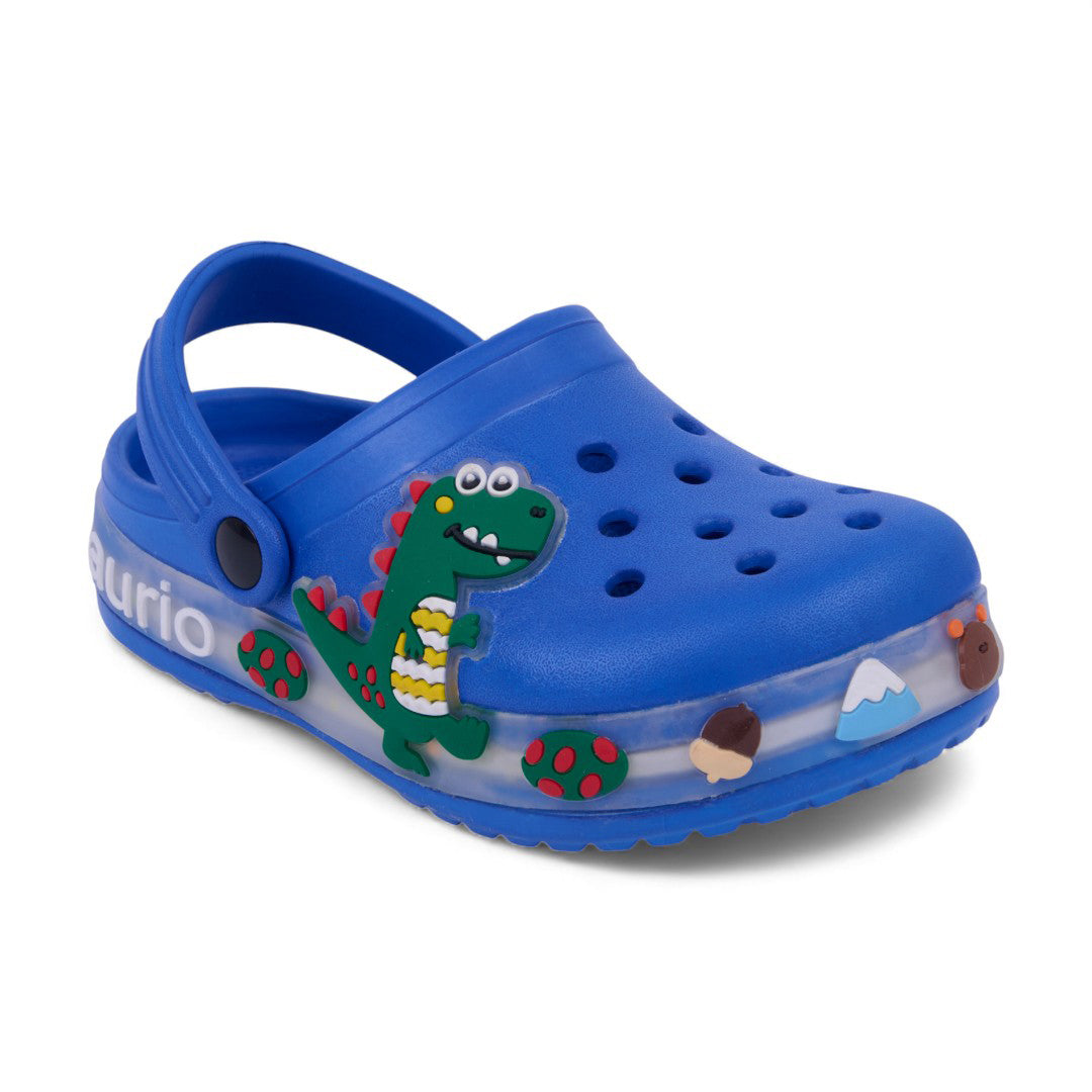 Sandalia azul con adorno de dinosaurio, suela con luces y pulsera; divertida, cómoda y perfecta para niños.