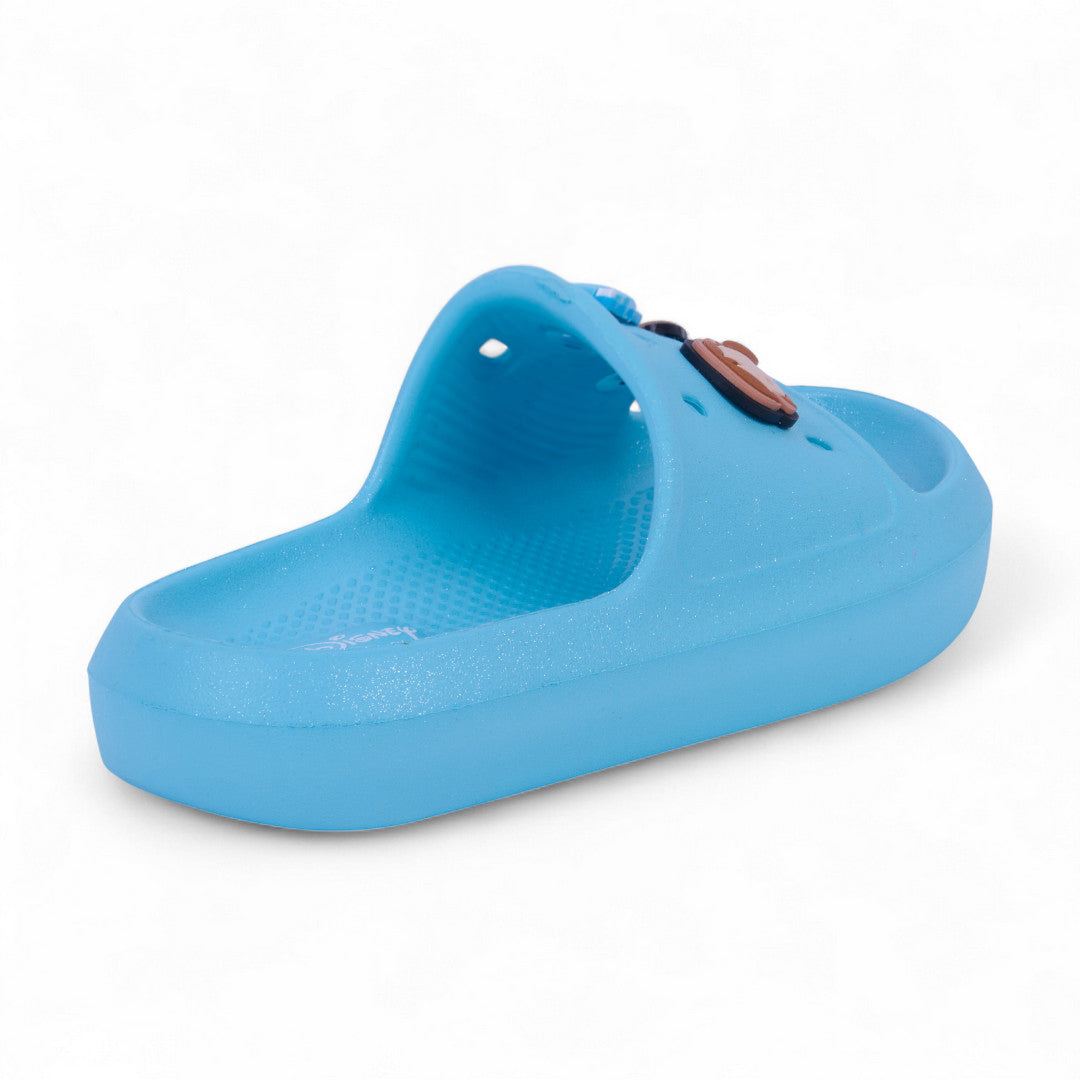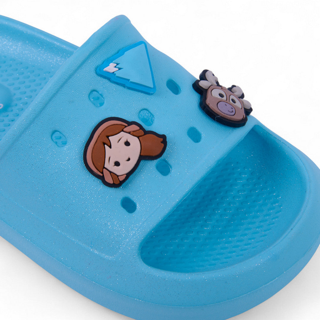 Sandalia de piso color azul con delicadas aplicaciones decorativas que aportan brillo y estilo. Fabricada en material sintético con plantilla suave para máxima comodidad. Diseño moderno, ligero y femenino, ideal para uso diario, salidas casuales o looks de verano con un toque elegante y relajado.