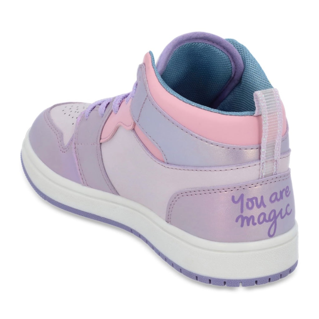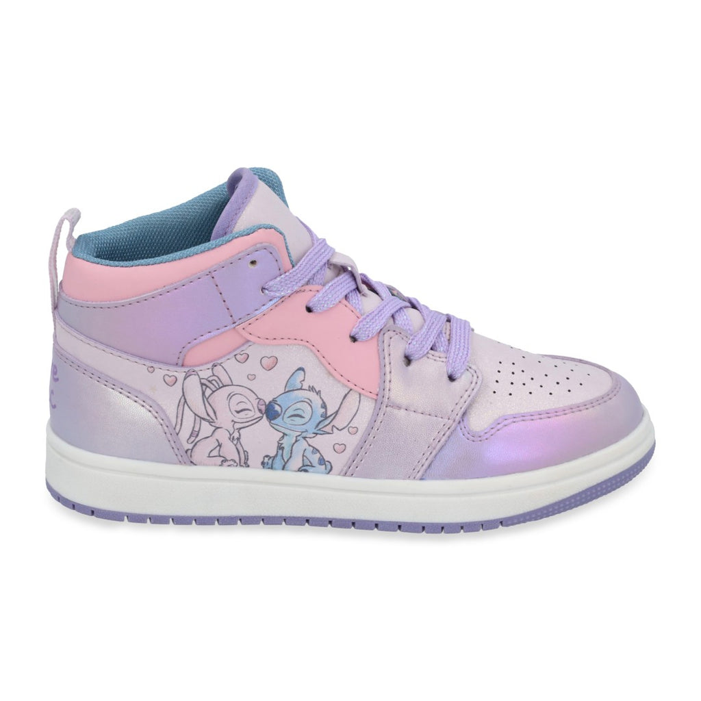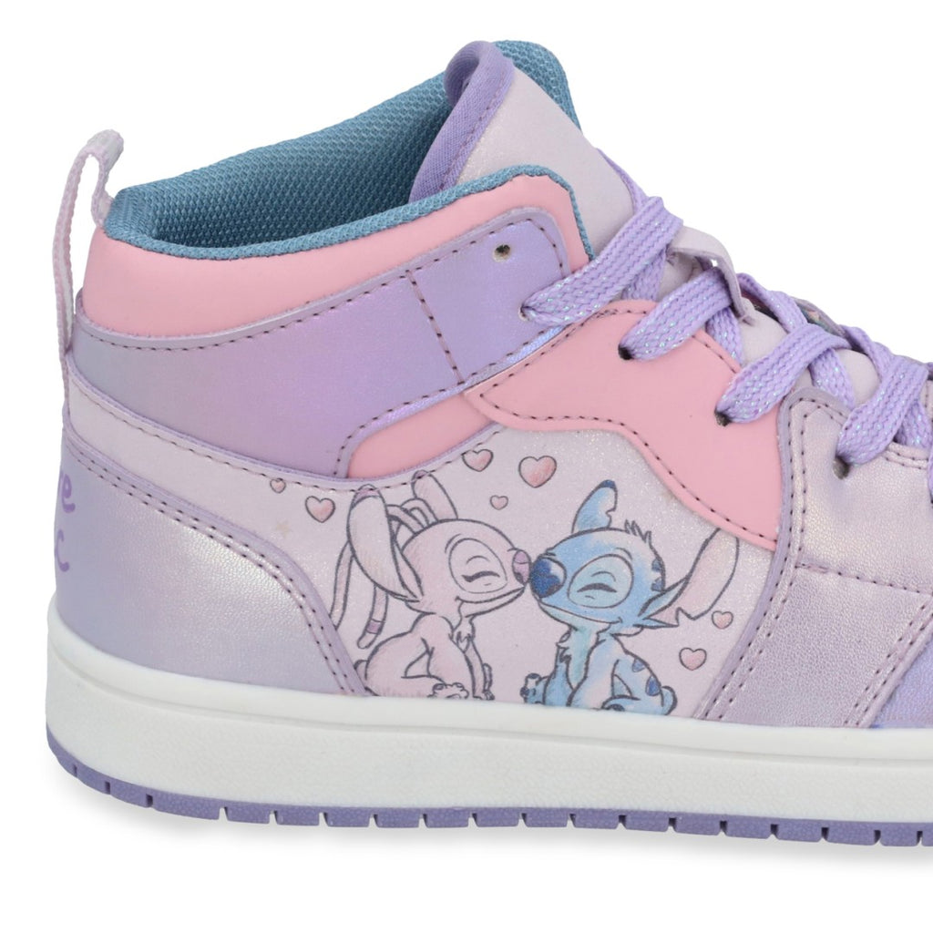 Tenis casual abotinado color lila, con estampado de STITCH, con agujetas. Plantilla: Textil. Material: Sintético.