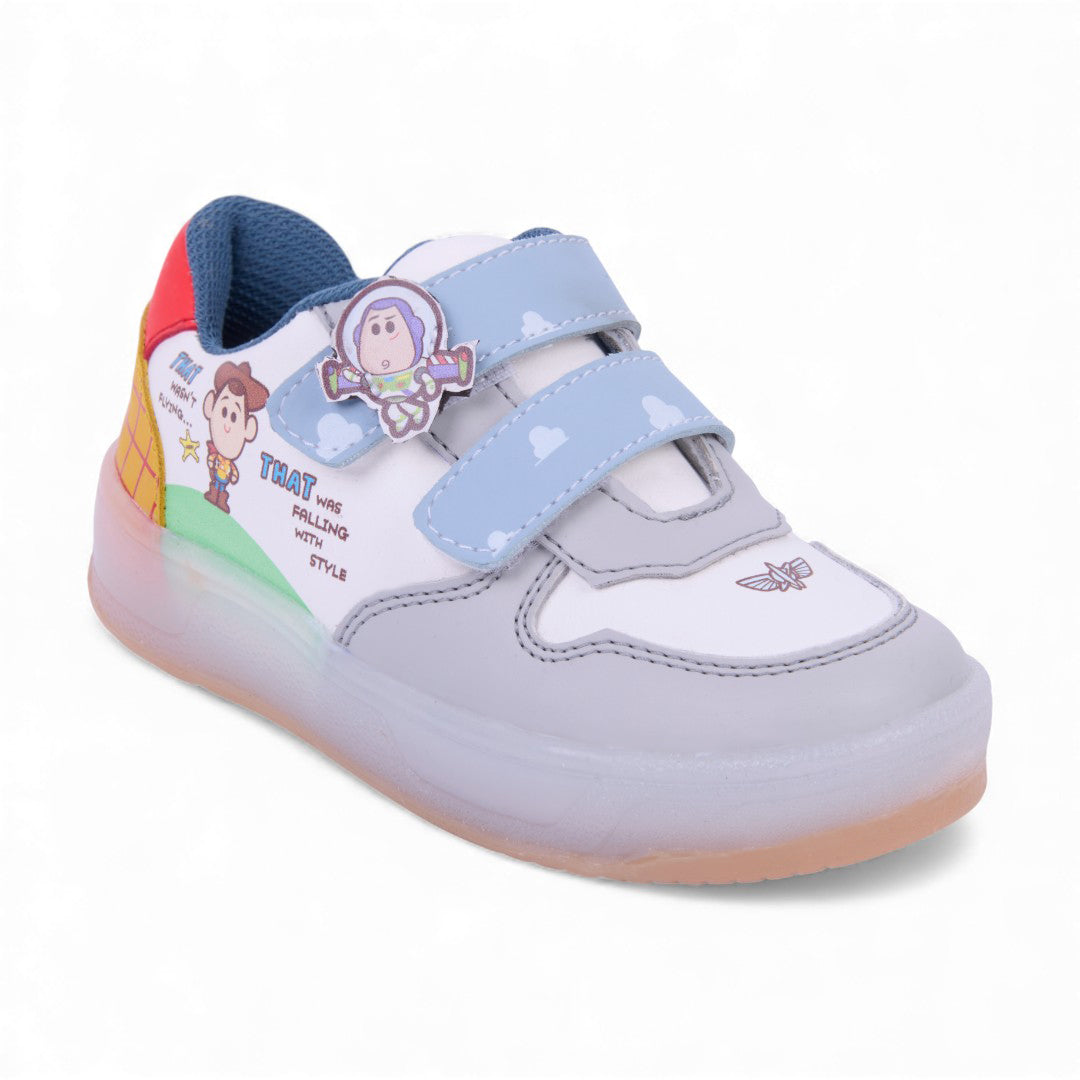 Tenis casual multicolor con estampado divertido, cierres con velcro y luces integradas en la suela. Ligeros, cómodos y perfectos para looks infantiles llenos de energía.