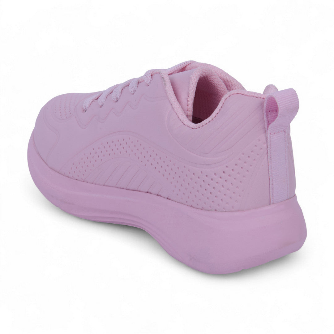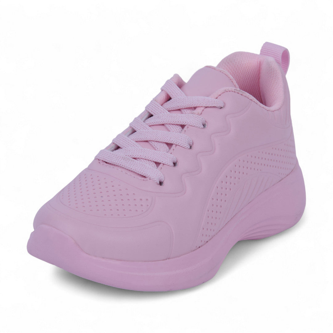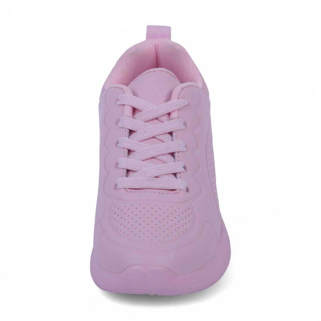 Tenis deportivo color rosa con cintas, diseño ligero y flexible ideal para entrenamiento, caminatas o uso diario; cómodos, modernos y de acabado sintético resistente.