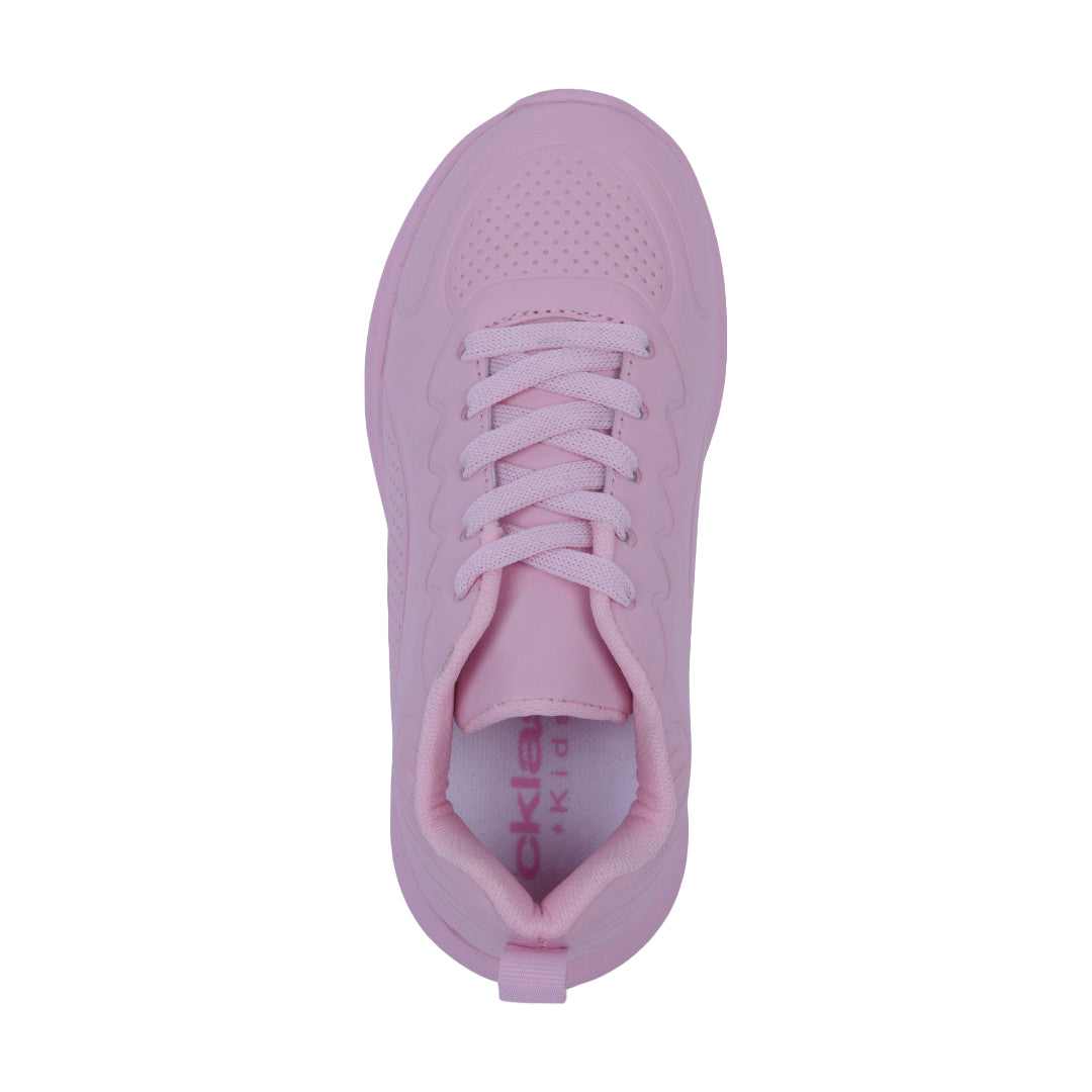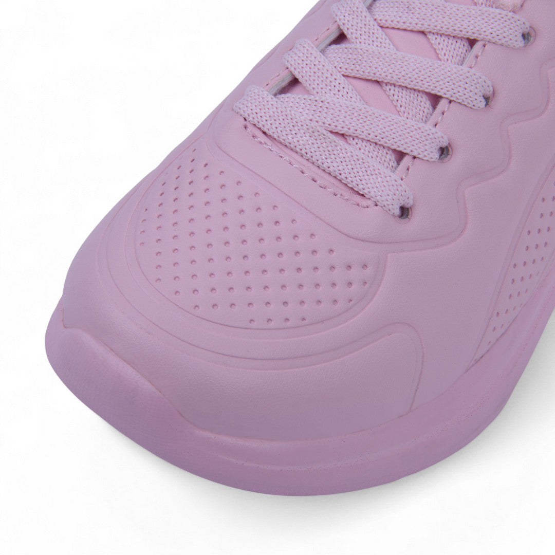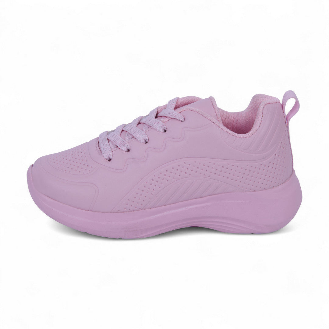 Tenis deportivo color rosa con cintas, diseño ligero y flexible ideal para entrenamiento, caminatas o uso diario; cómodos, modernos y de acabado sintético resistente.