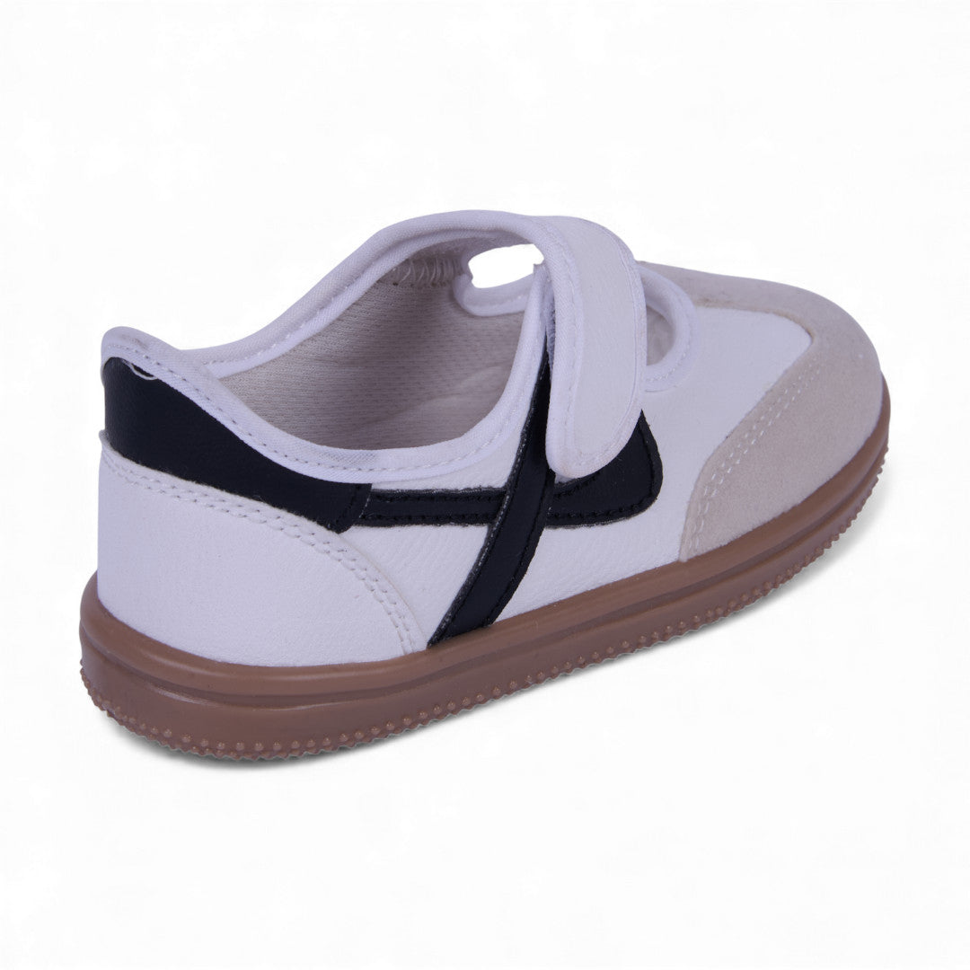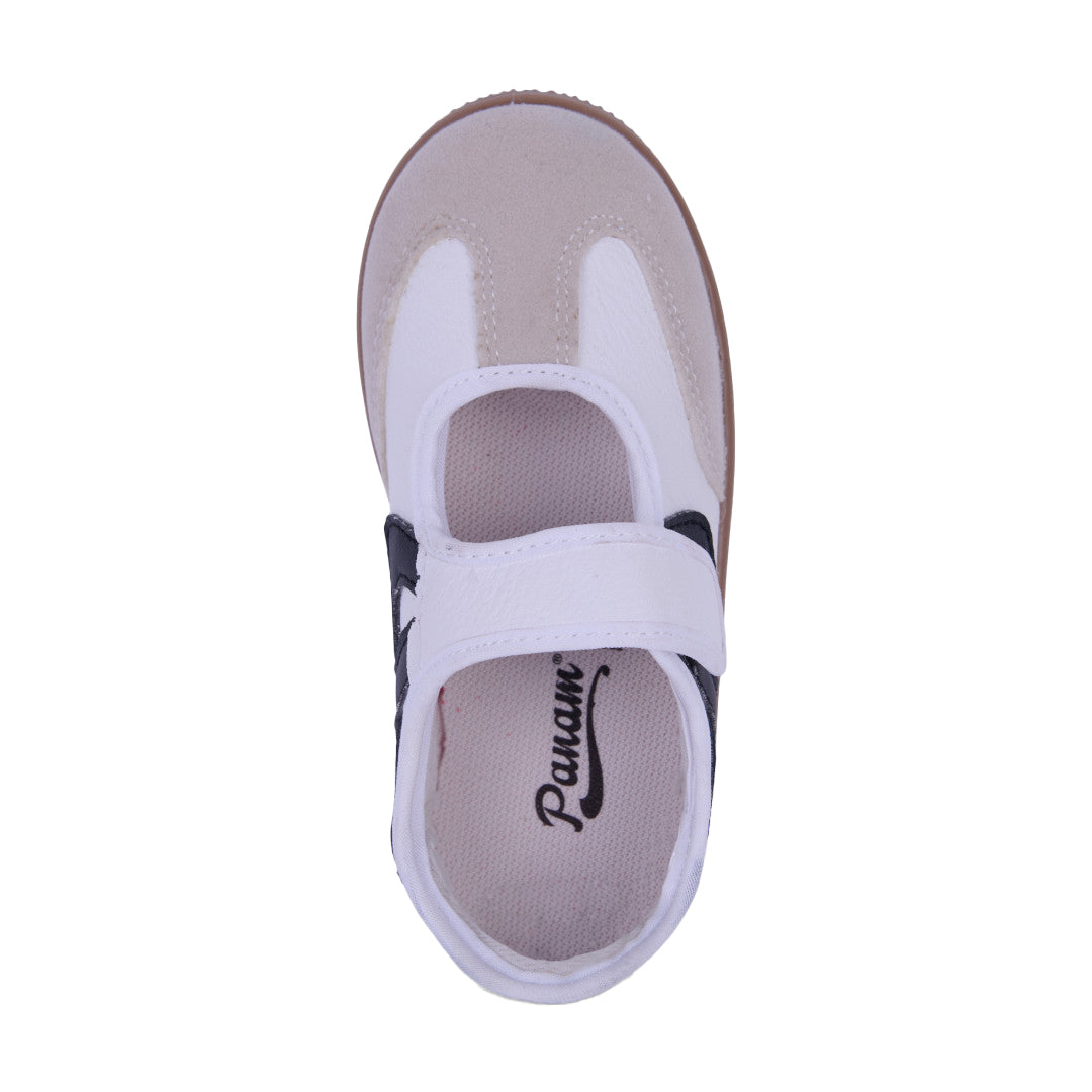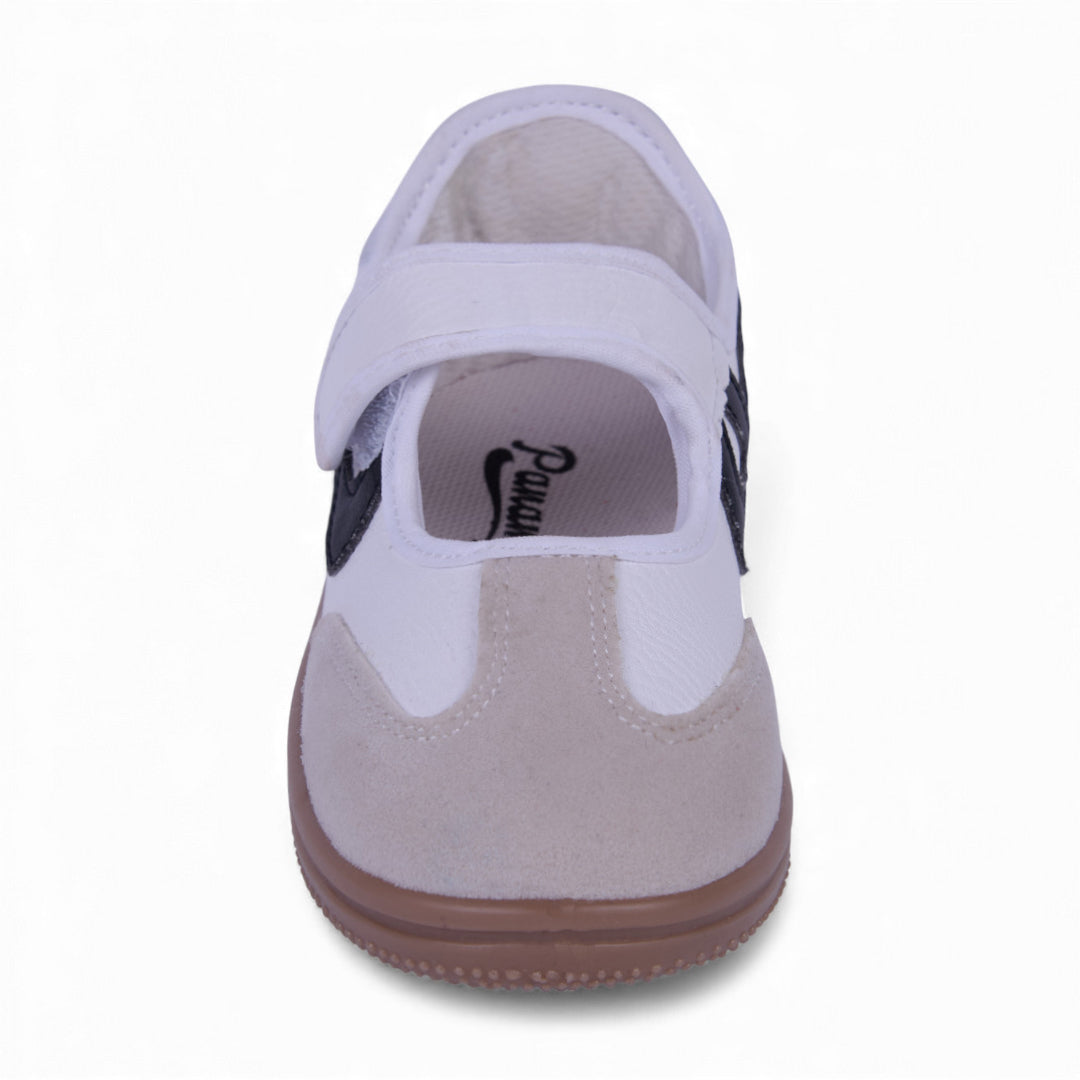 Tenis tipo balerina Panam para niña, fabricados en corte sintético ligero con suela sintética resistente. Diseño cómodo y flexible que combina el estilo clásico de una balerina con la practicidad de un tenis escolar. Ideales para uso diario, actividades escolares o looks casuales infantiles.