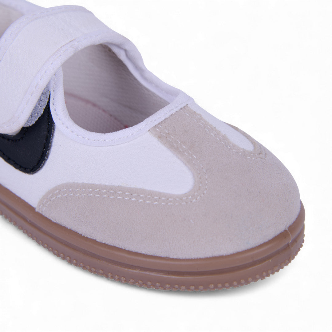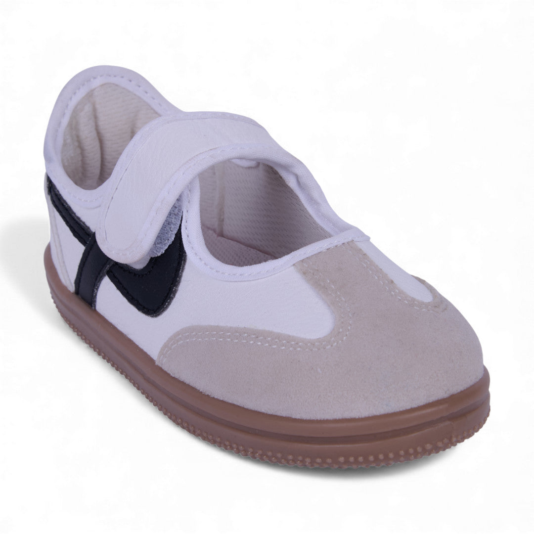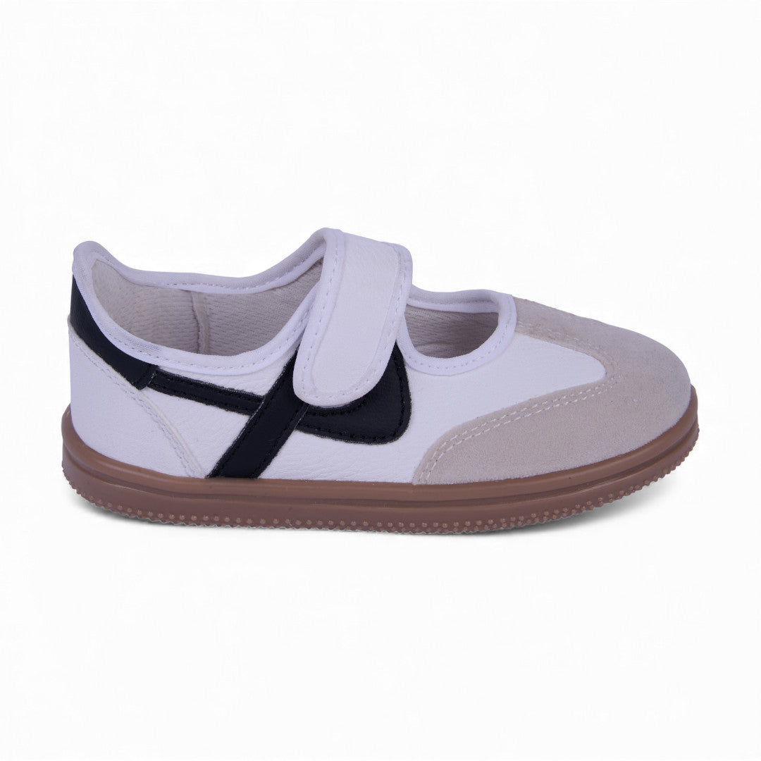 Tenis tipo balerina Panam para niña, fabricados en corte sintético ligero con suela sintética resistente. Diseño cómodo y flexible que combina el estilo clásico de una balerina con la practicidad de un tenis escolar. Ideales para uso diario, actividades escolares o looks casuales infantiles.