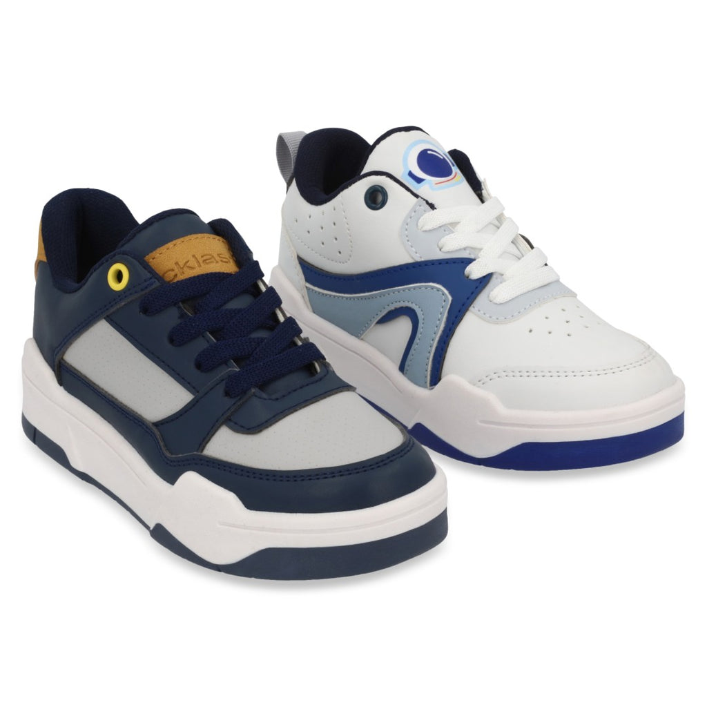 DÚO 717 TENIS CASUAL BLANCO Y MARINO CON ADORNO