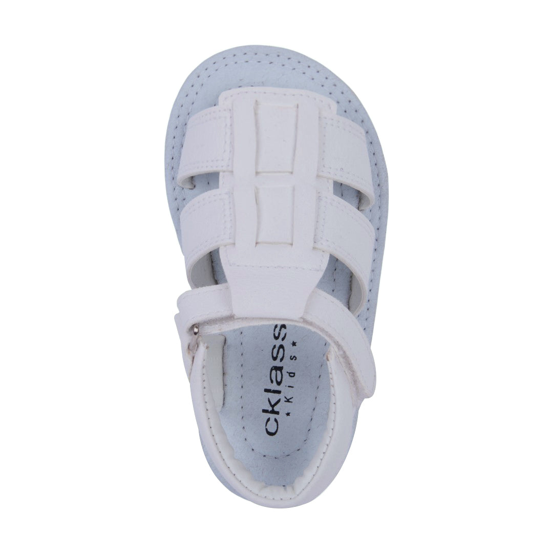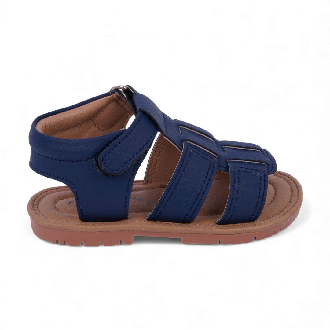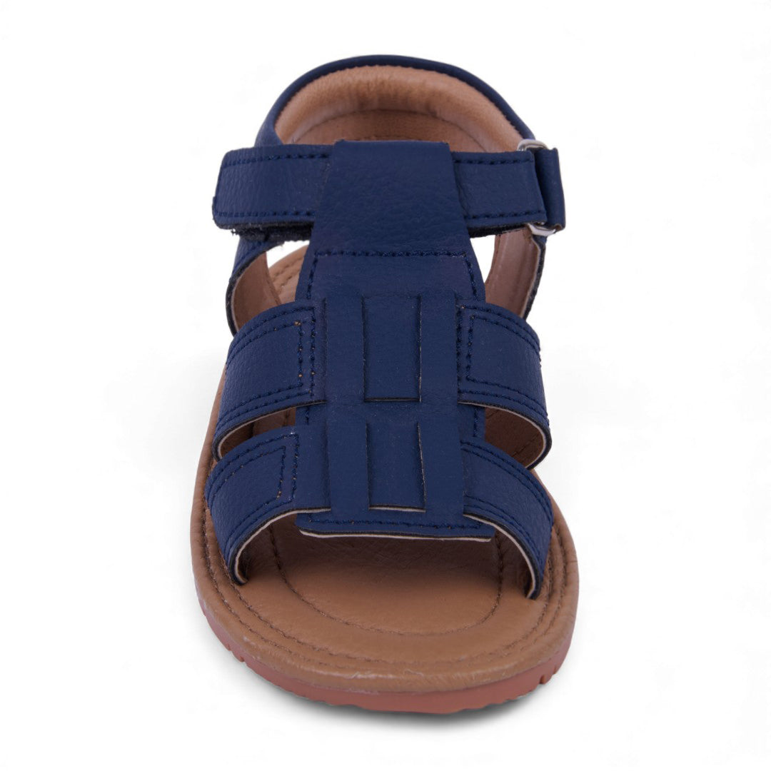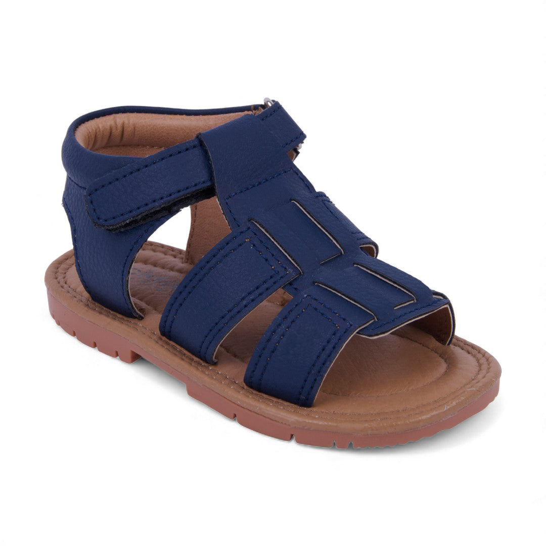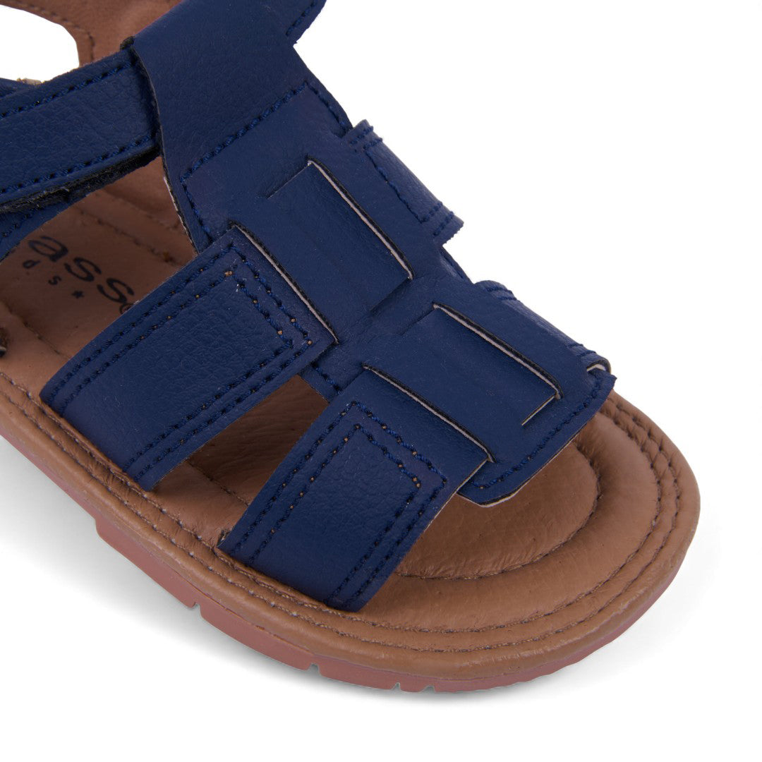 Dúo de sandalias casuales marino y blanco con látigos cruzados y pulsera con velcro; diseño moderno, práctico y cómodo con plantilla sintética.