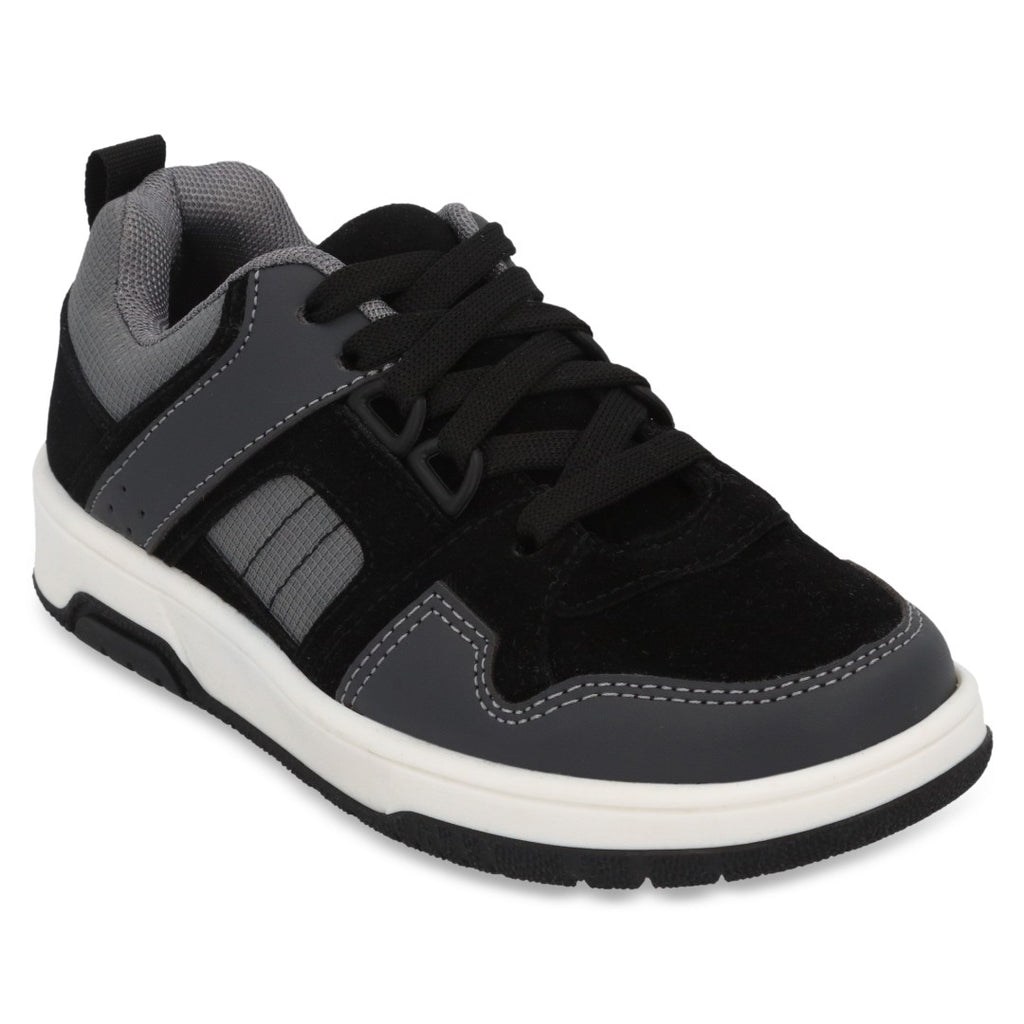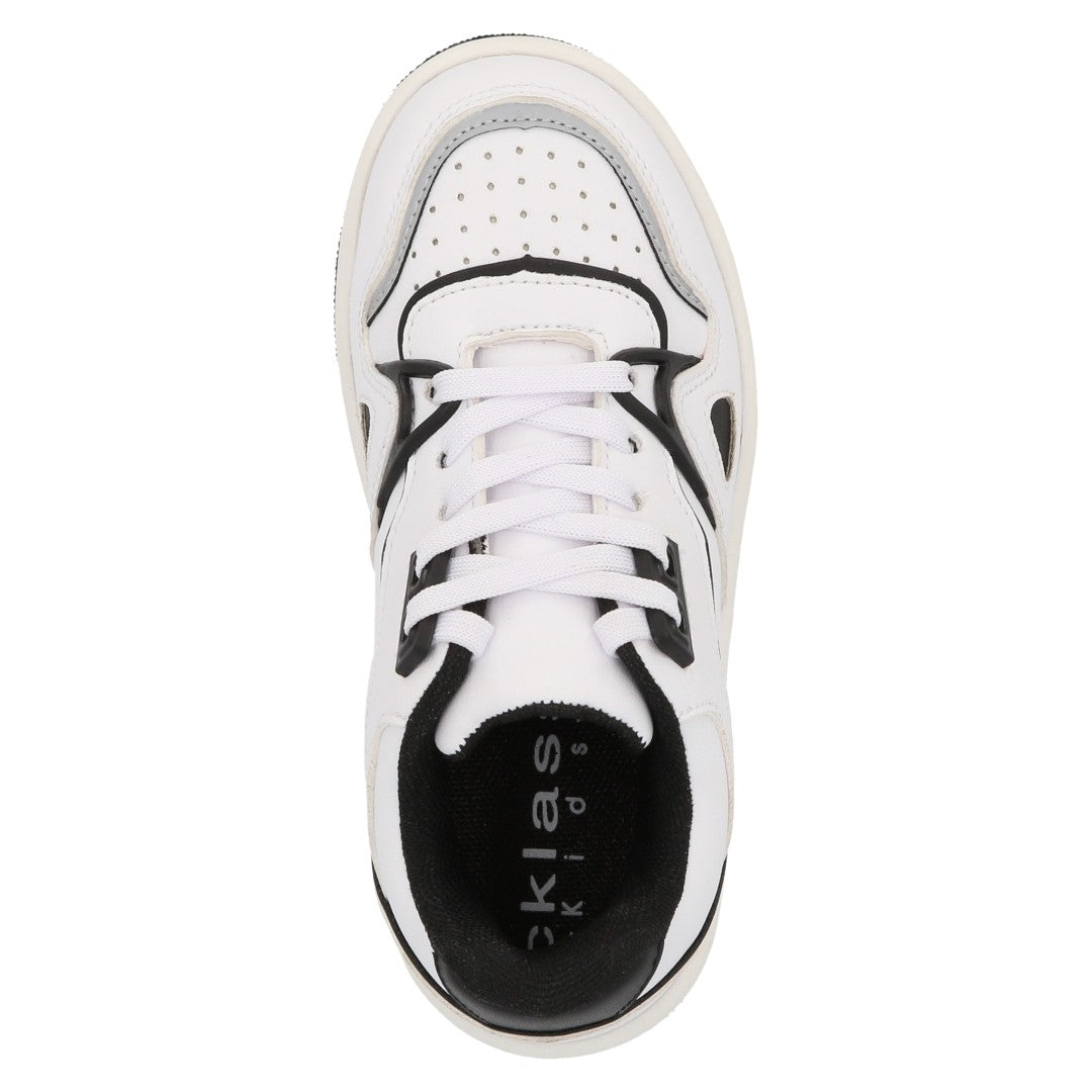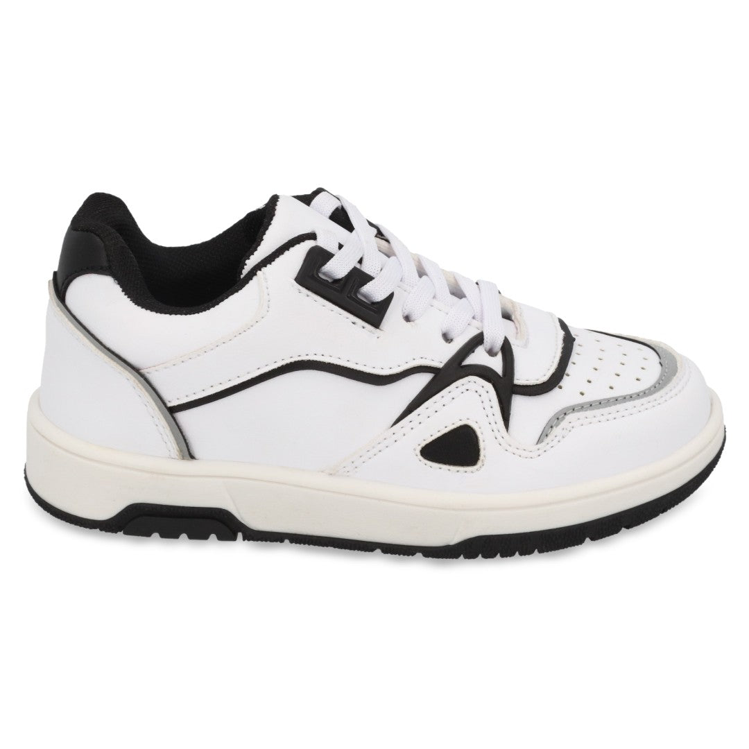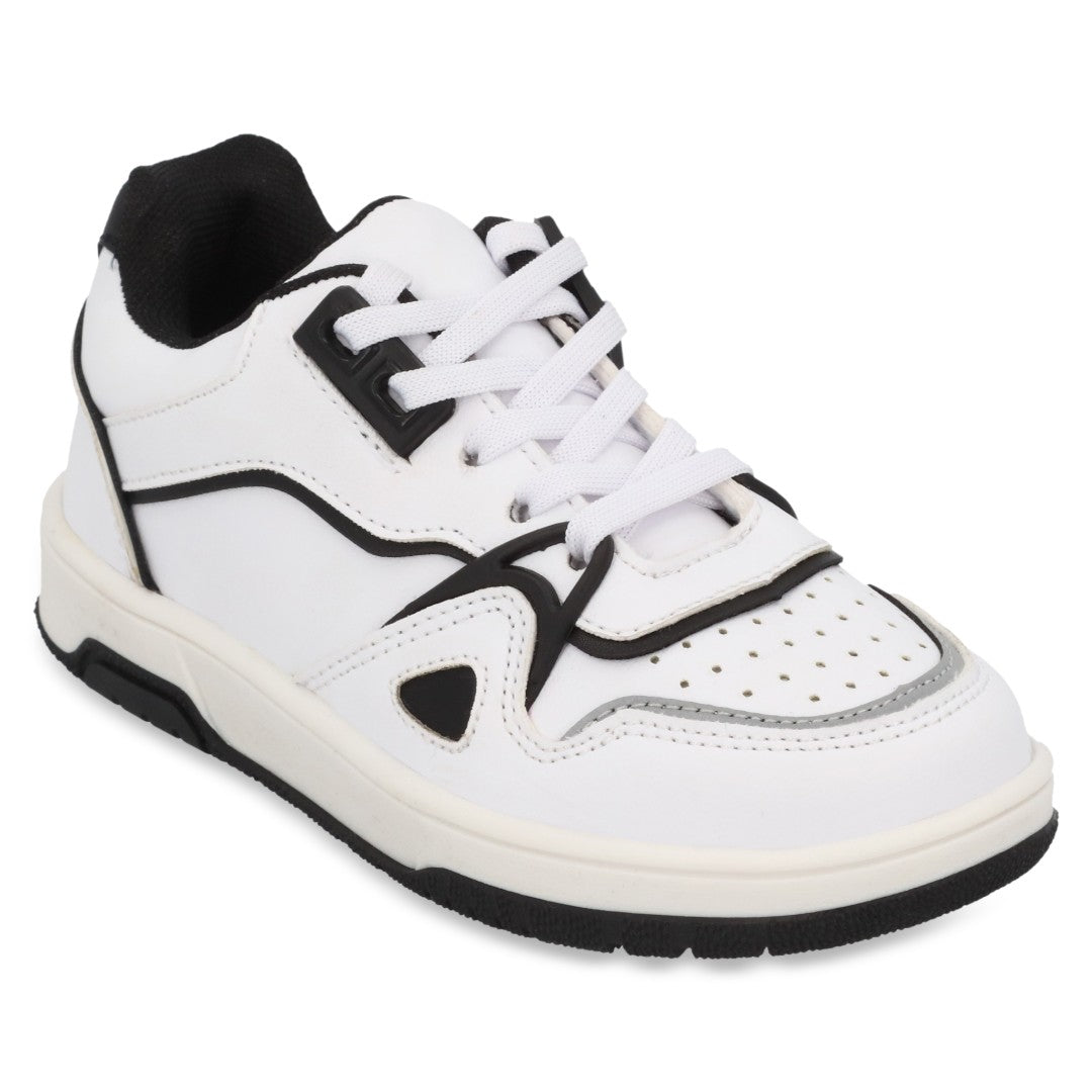 Dúo tenis casual con detalles laterales y cintas, plantilla textil, color blanco y negro. Material: Sintético.