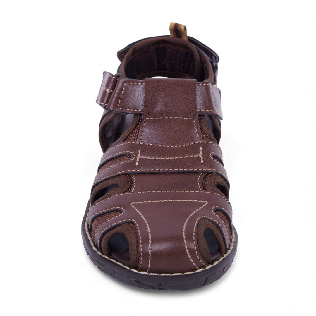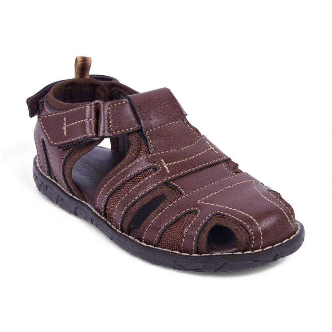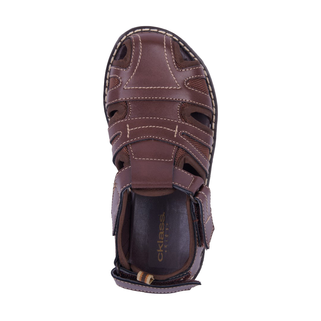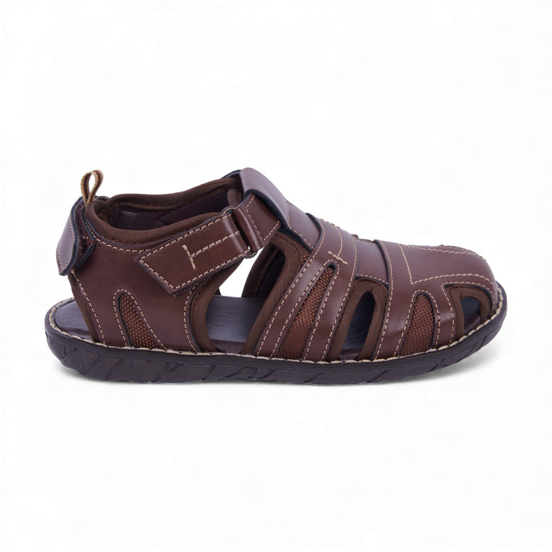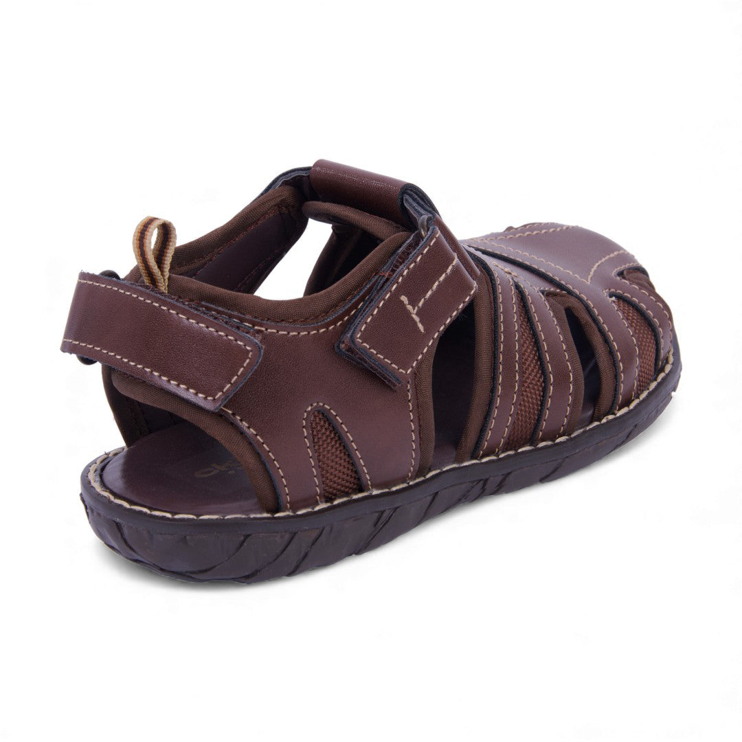 Sandalia casual color café con látigos cruzados y ajuste con velcro para mayor comodidad. Ligera, flexible y perfecta para looks relajados y combinables.