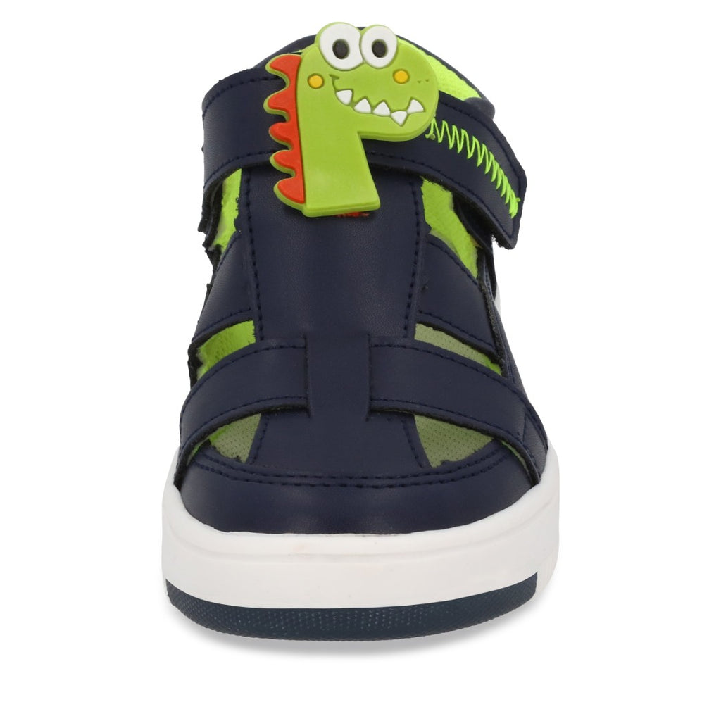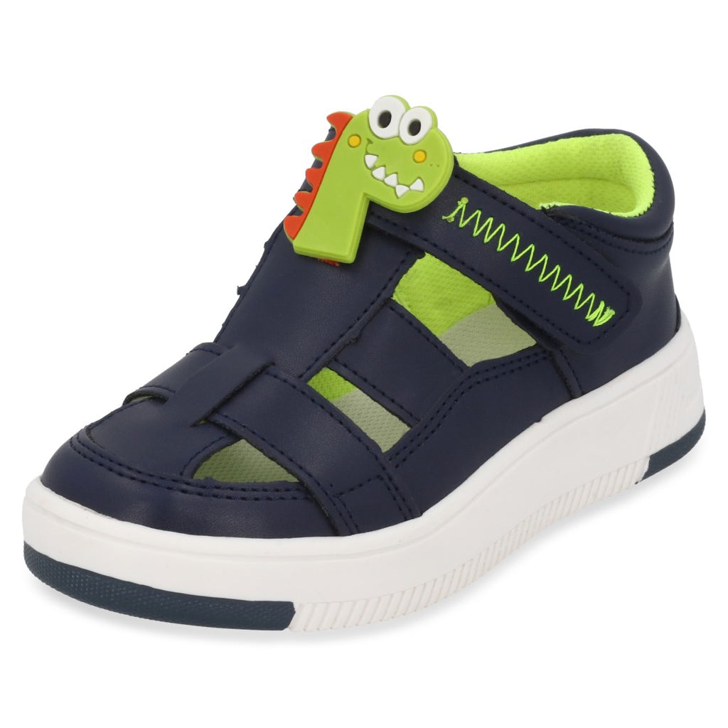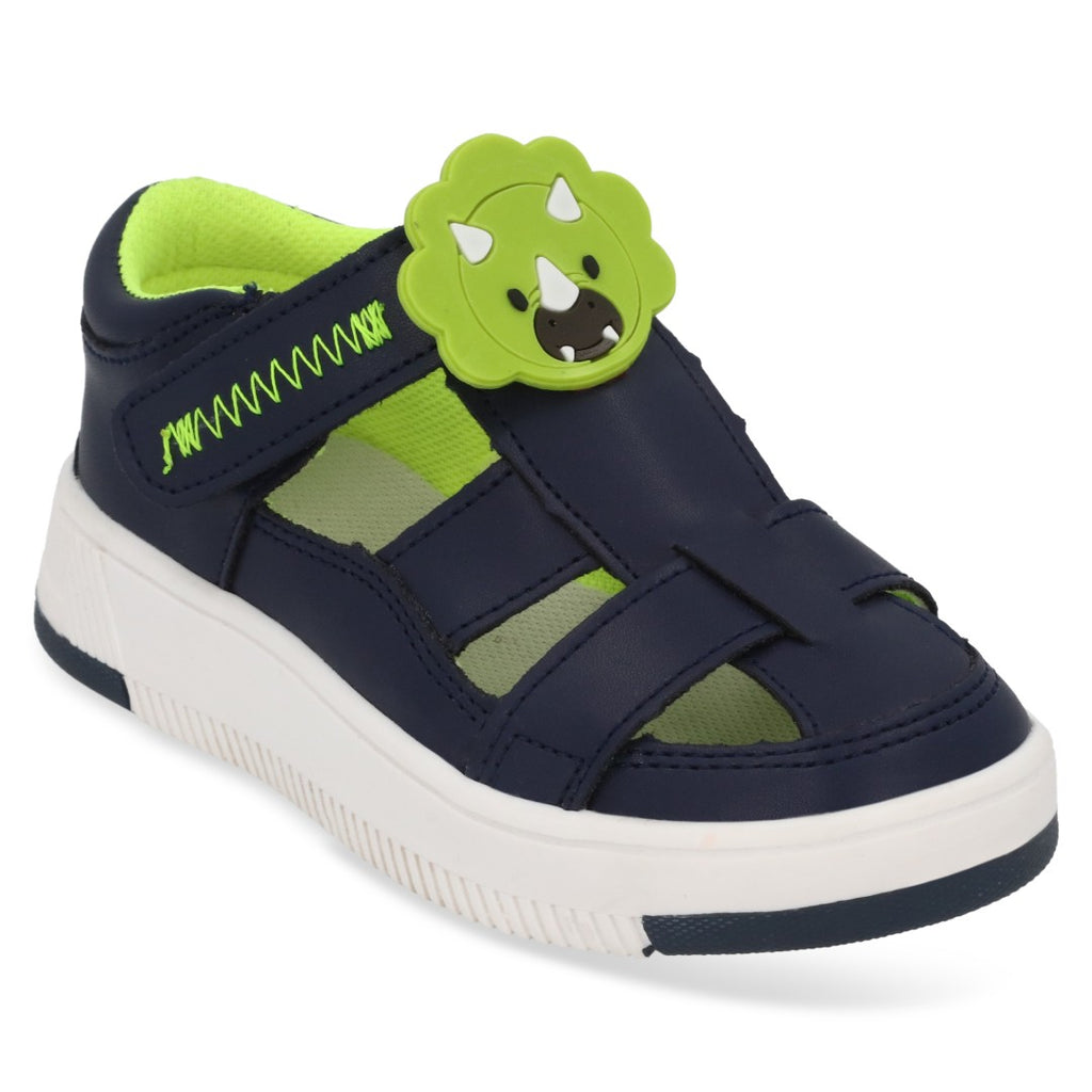 Sandalia casual con detalle de dinosaurio y contactel, plantilla textil, color marino. Material: Sintético.