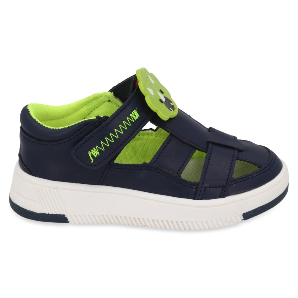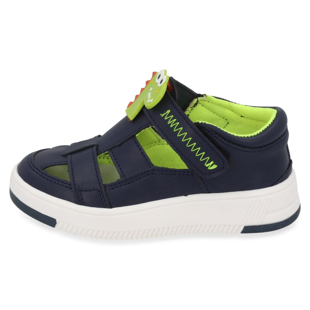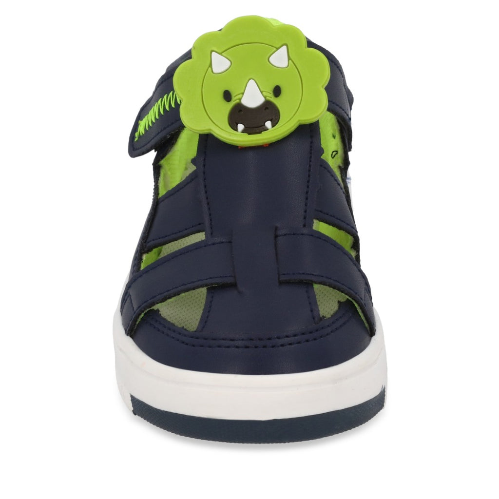 Sandalia casual con detalle de dinosaurio y contactel, plantilla textil, color marino. Material: Sintético.
