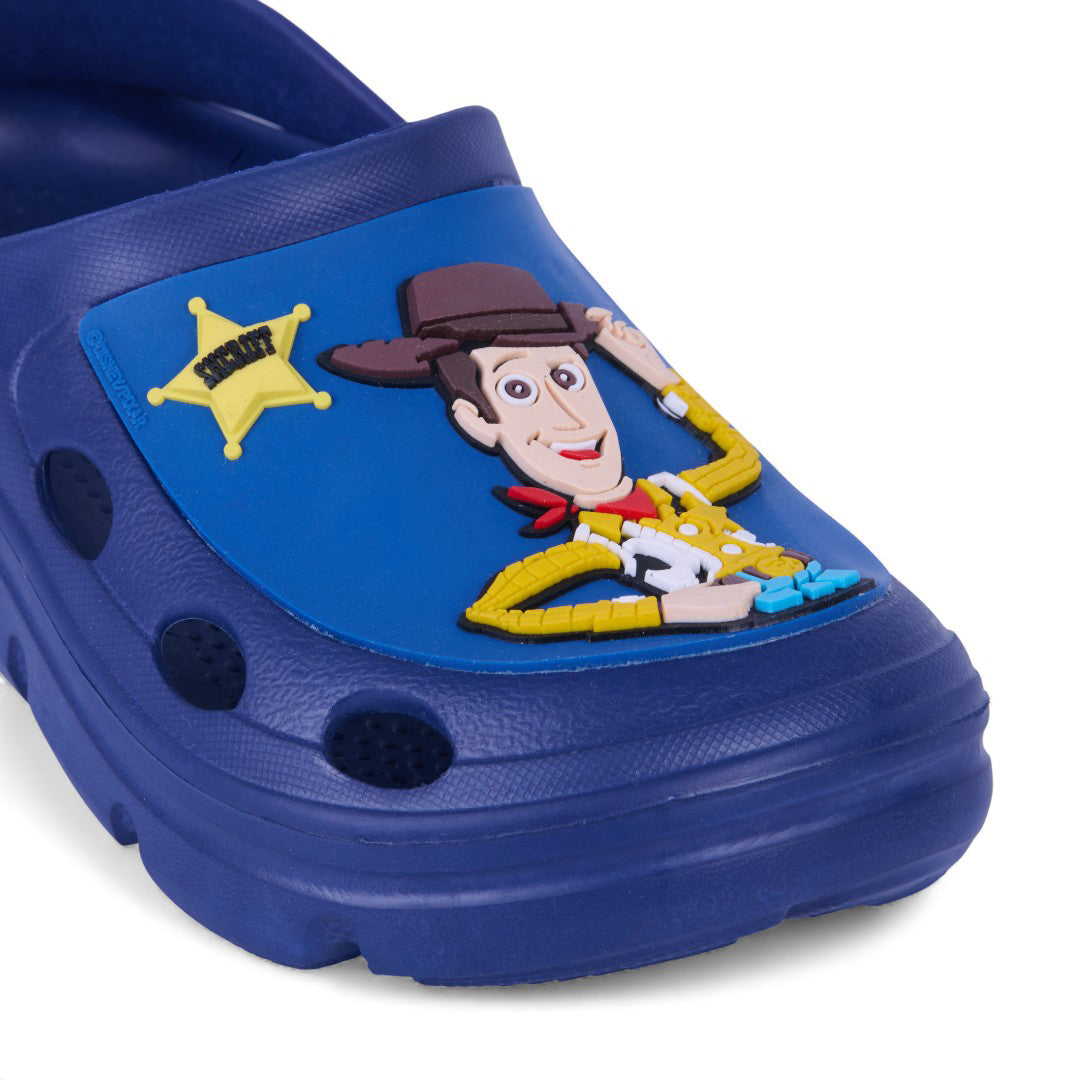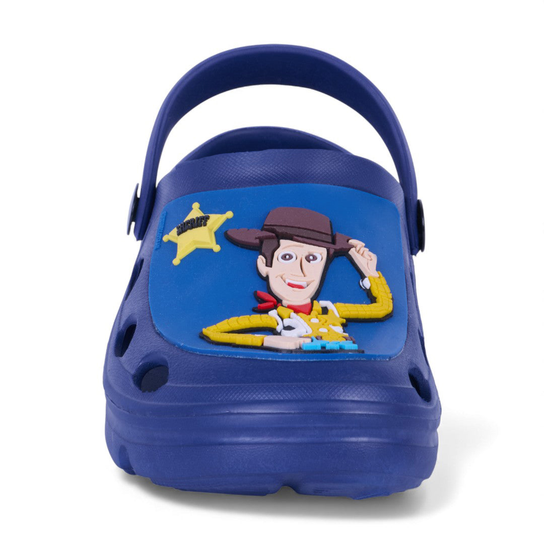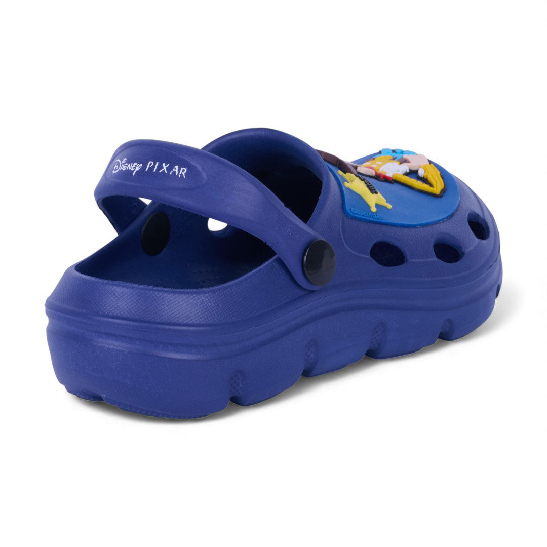 Sandalia casual de piso color marino con estampado gráfico decorativo y pulsera ajustable. Plantilla sintética ligera y diseño cómodo para uso diario.