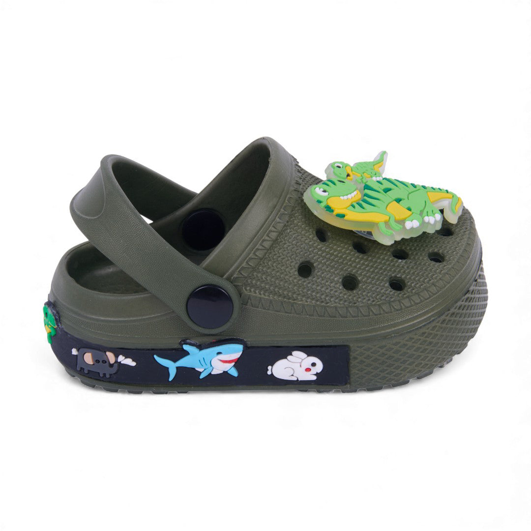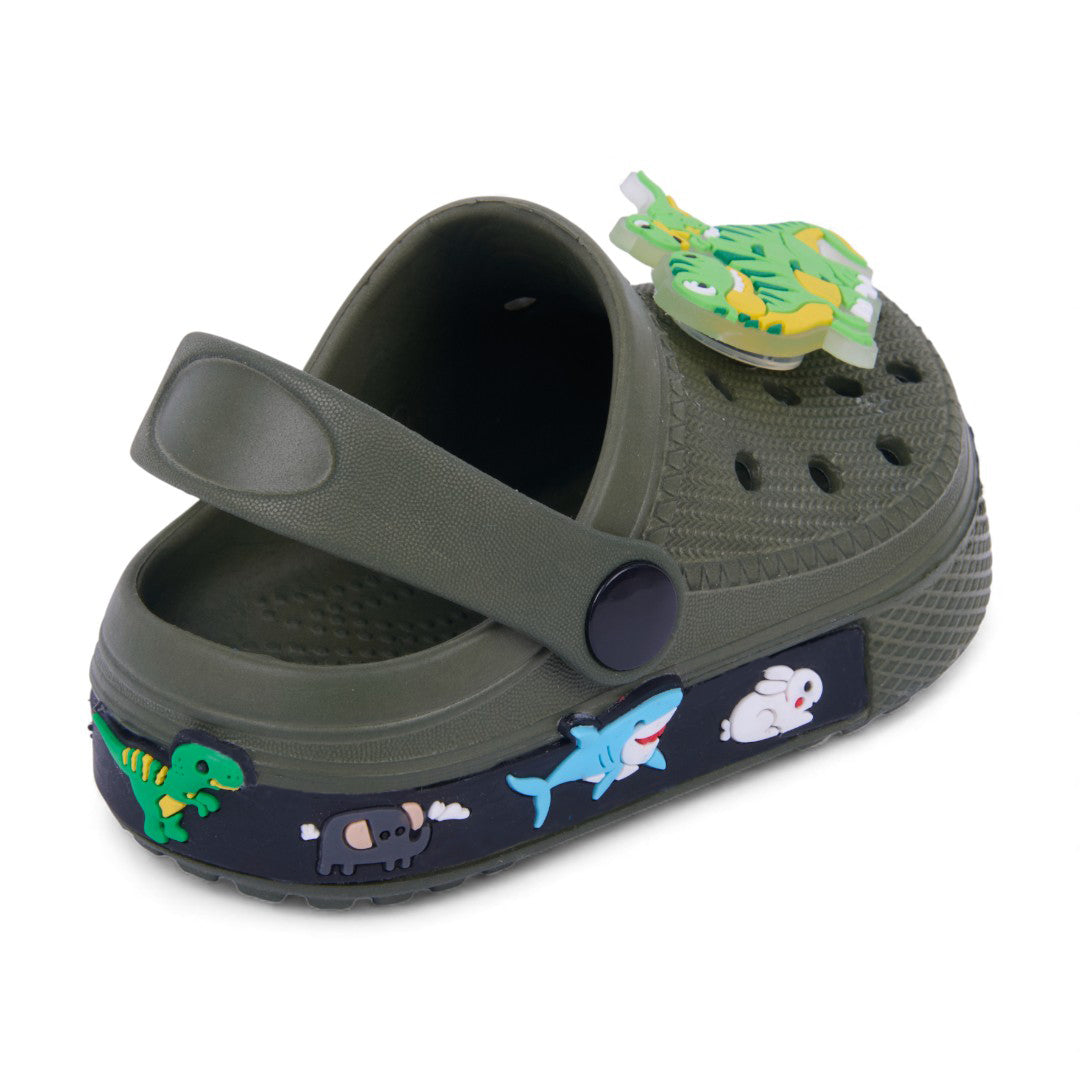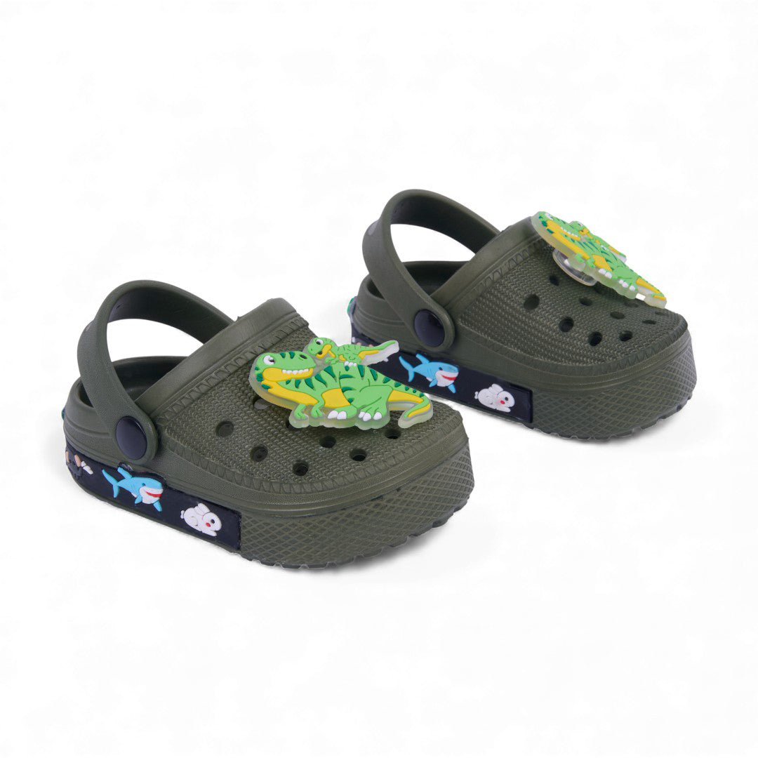 Sandalia verde con adorno y luces en la suela; ligera, cómoda y perfecta para niños.