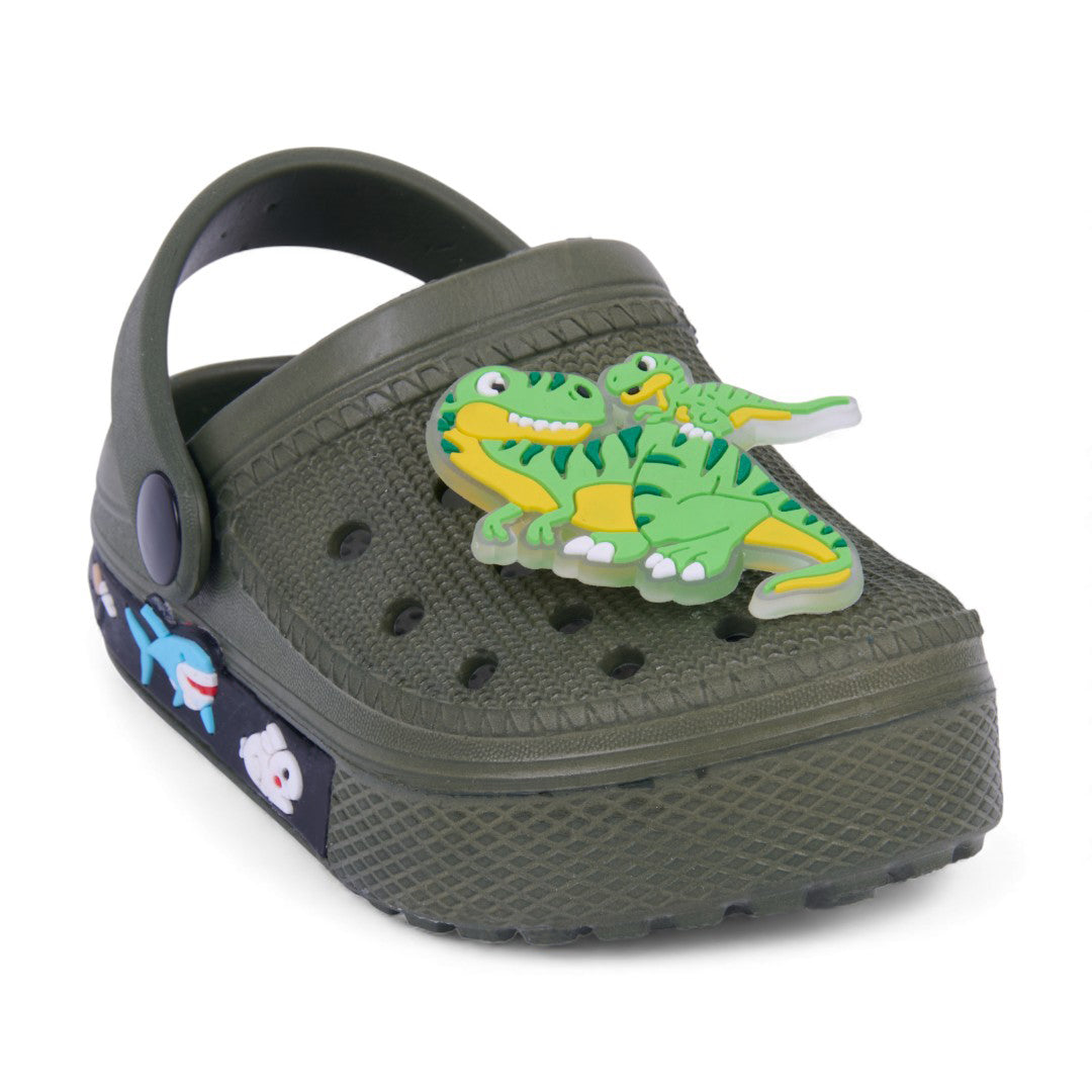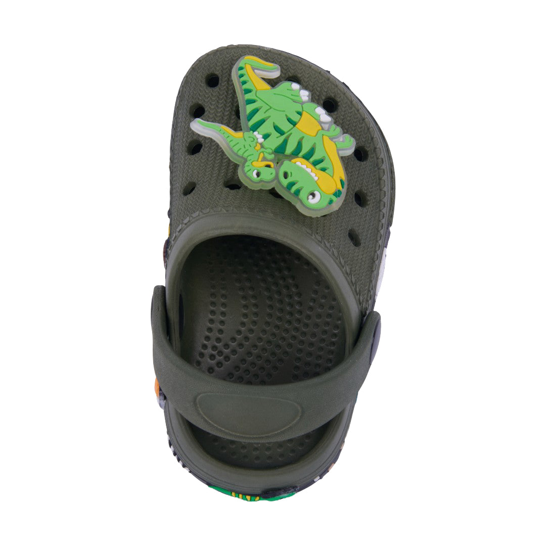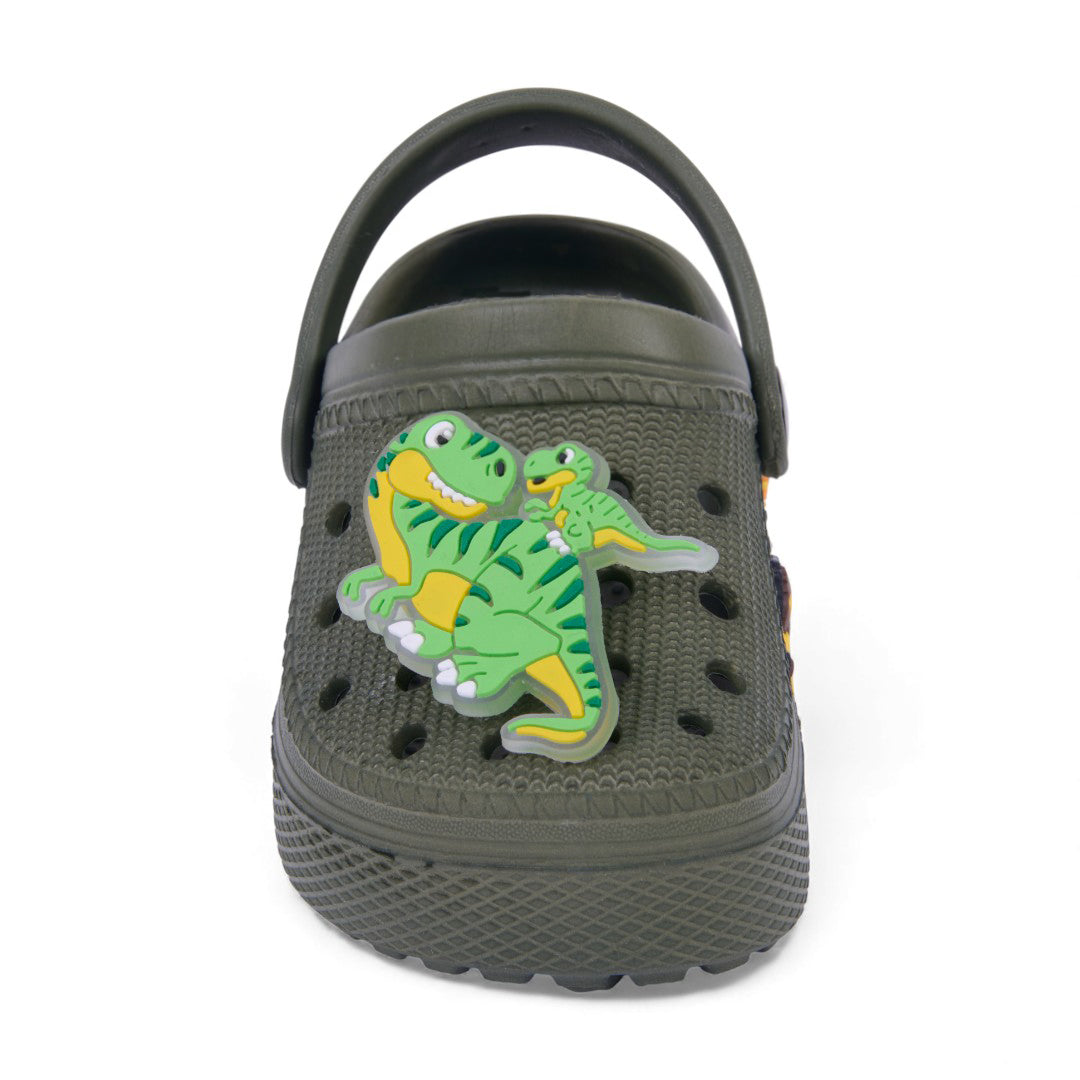 Sandalia verde con adorno y luces en la suela; ligera, cómoda y perfecta para niños.