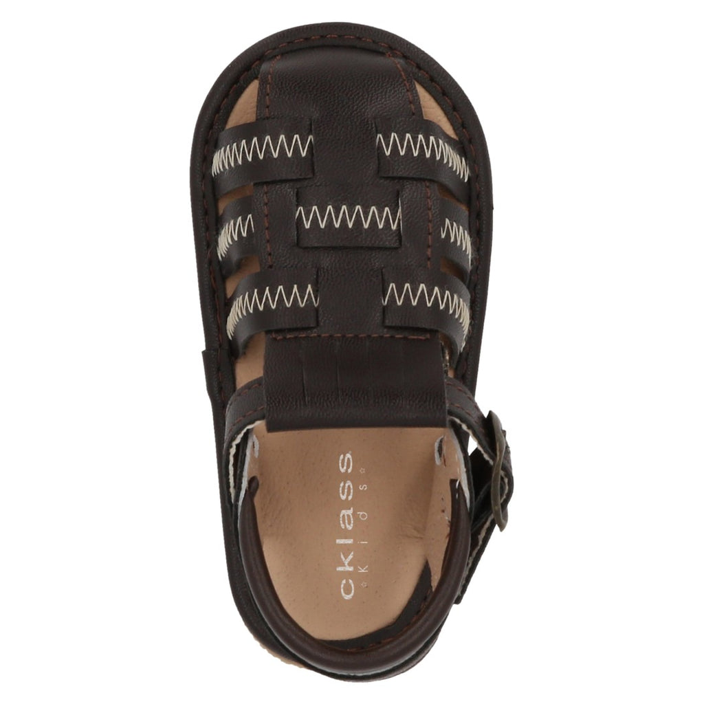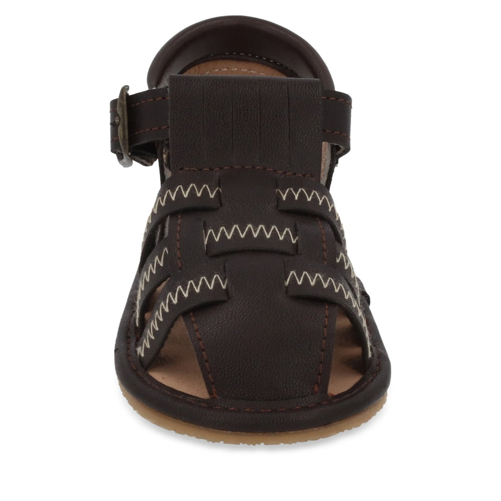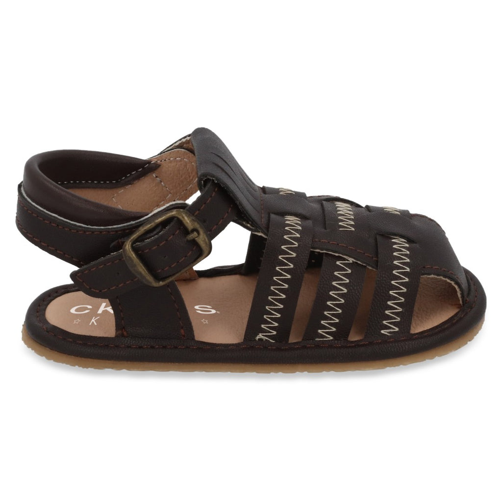 Six sandalia con detalle de tiras y hebilla, plantilla de piel, color café.