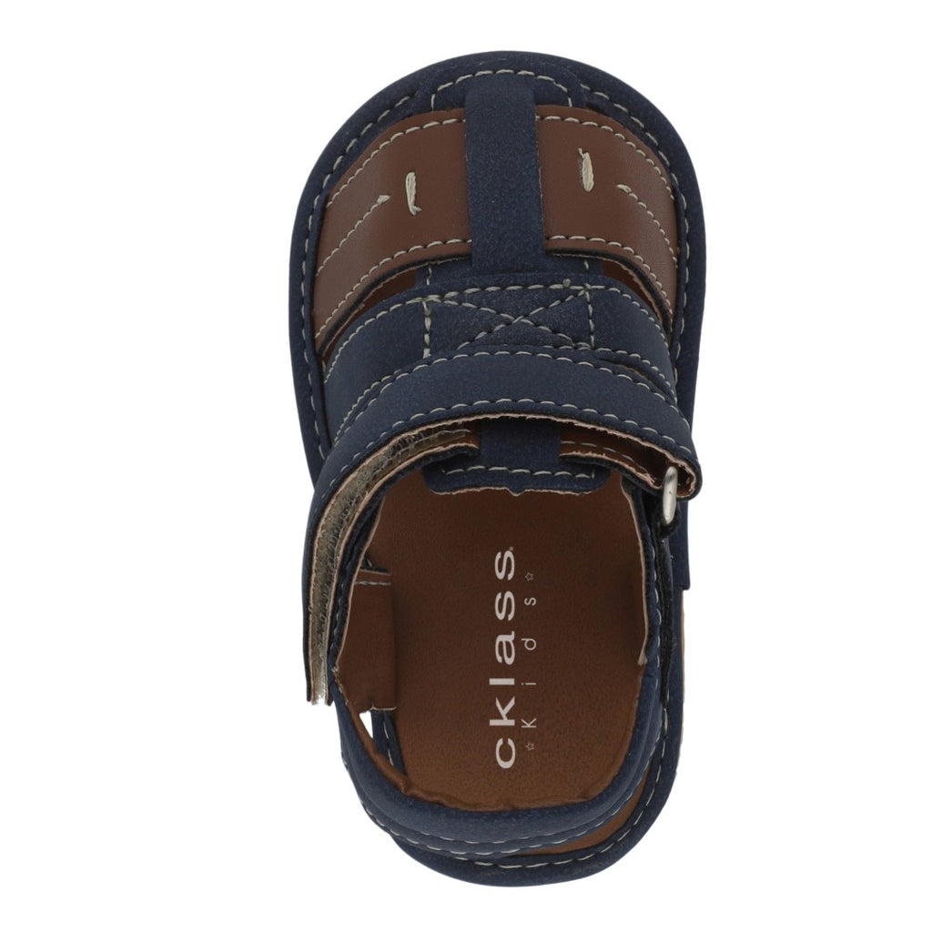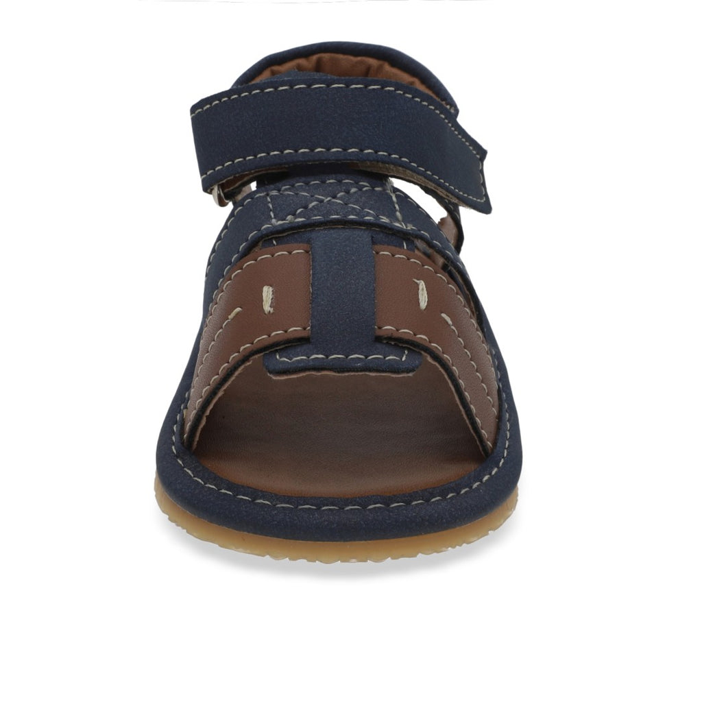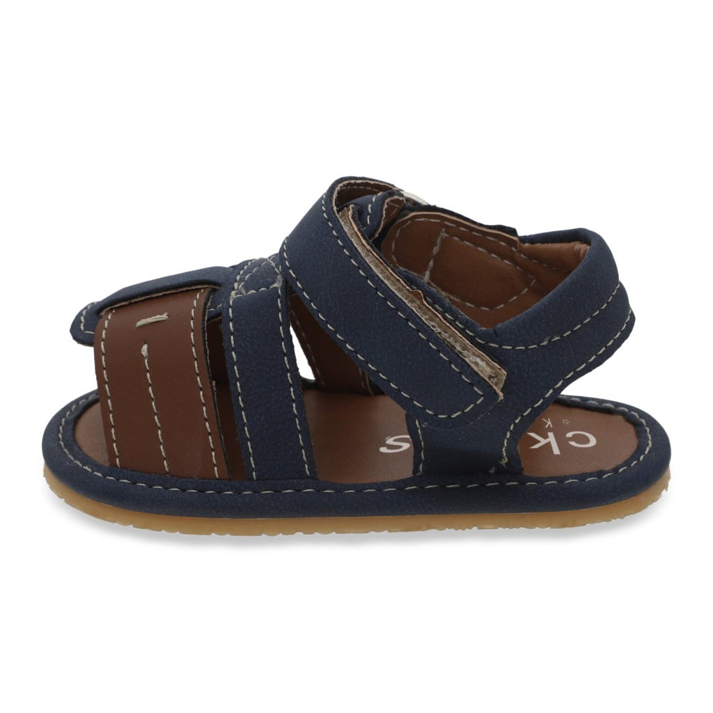 Sandalia con detalle de tiras y contactel, plantilla de piel, color marino.