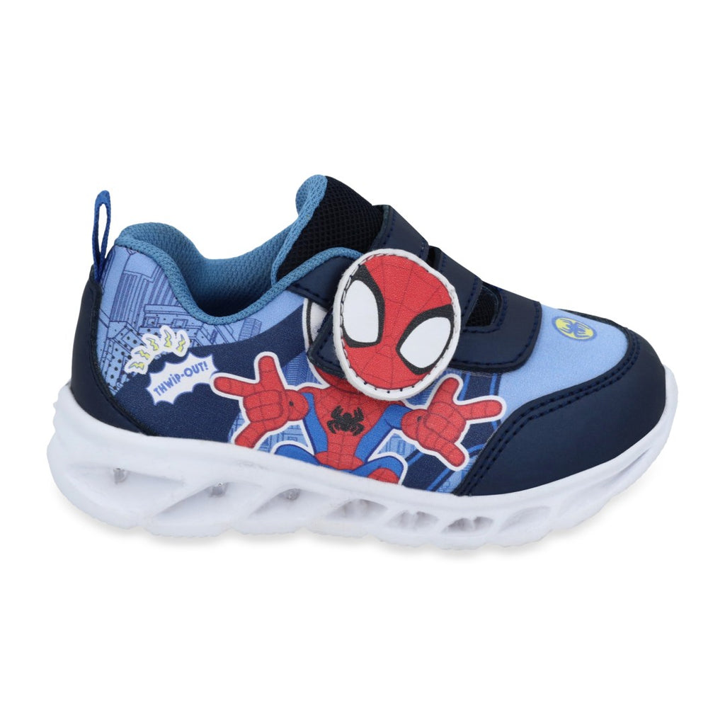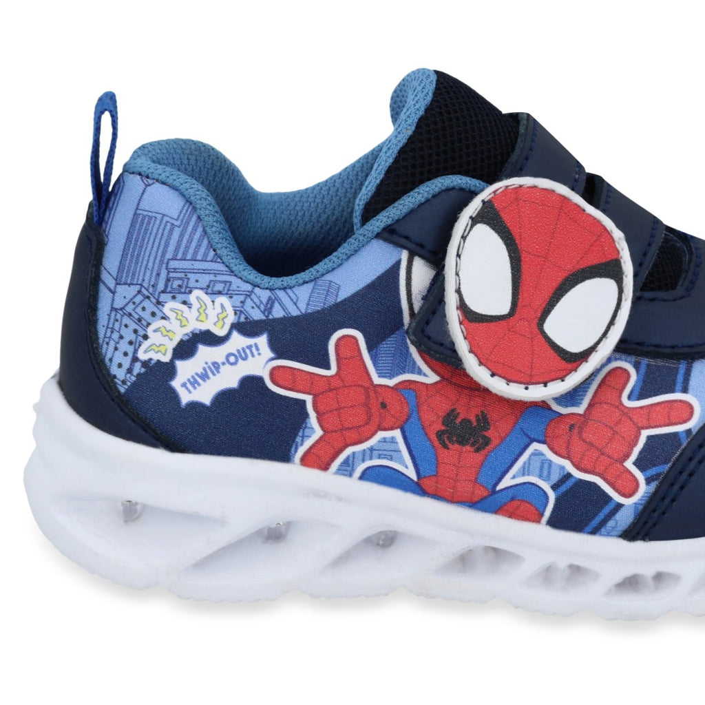 Tenis deportivo color marino, con estampado de SPIDEY, con contactel, calzado con luces. Plantilla: Textil. Material: Sintético.