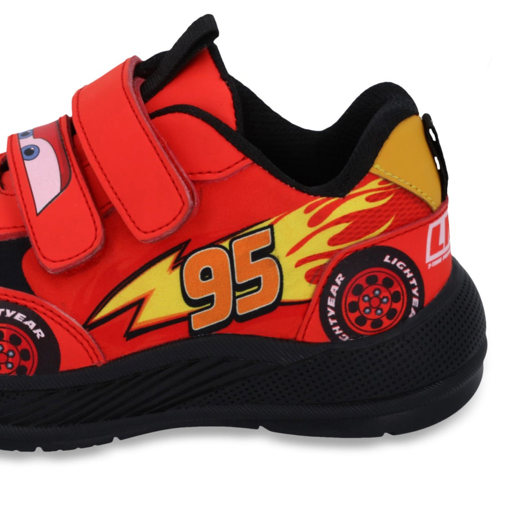 Tenis deportivo color rojo, con estampado de CARS, cintas elásticas y contactel. Plantilla: Textil. Material: Sintético.