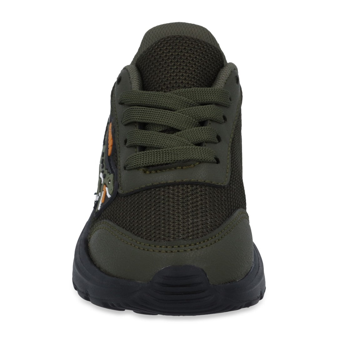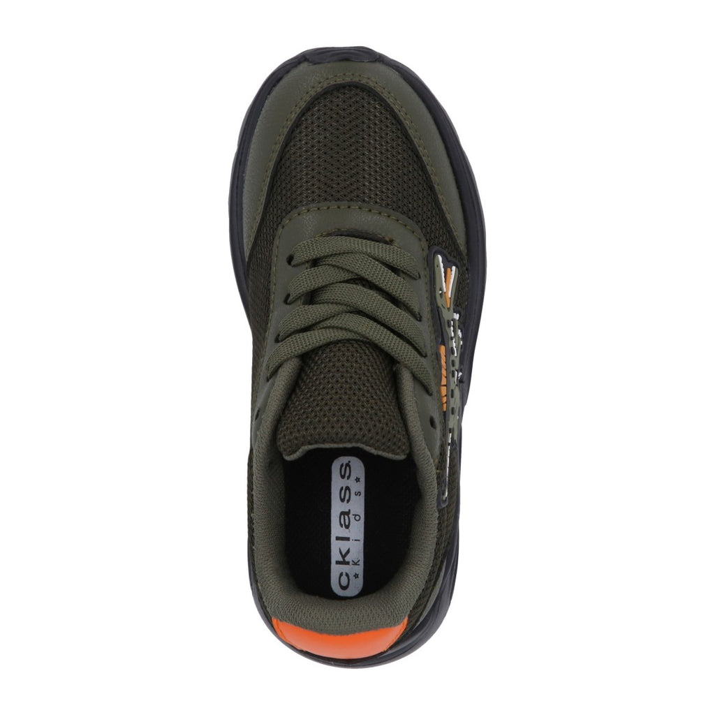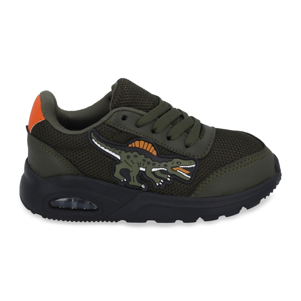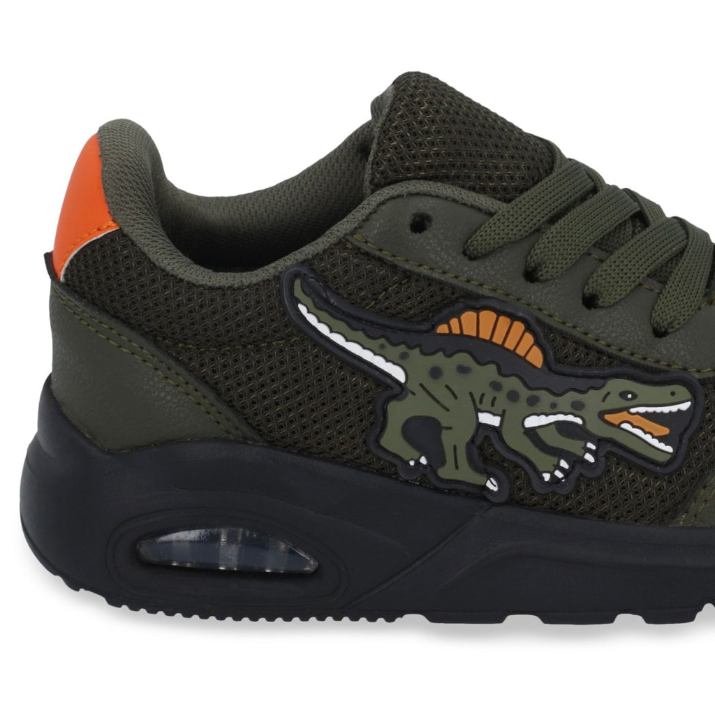 Tenis deportivo color verde, con detalles de dinosaurio. Plantilla: Textil. Material: Sintético/Textil.