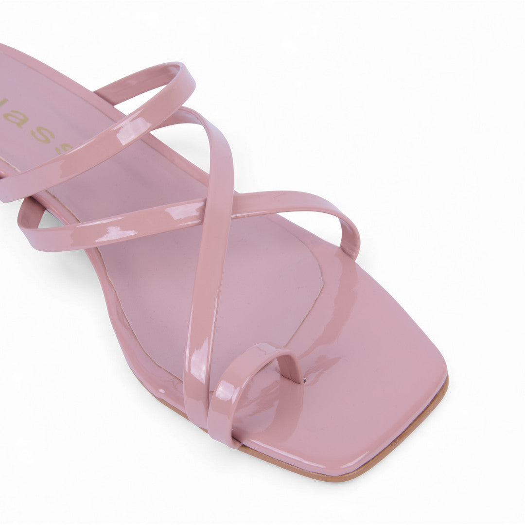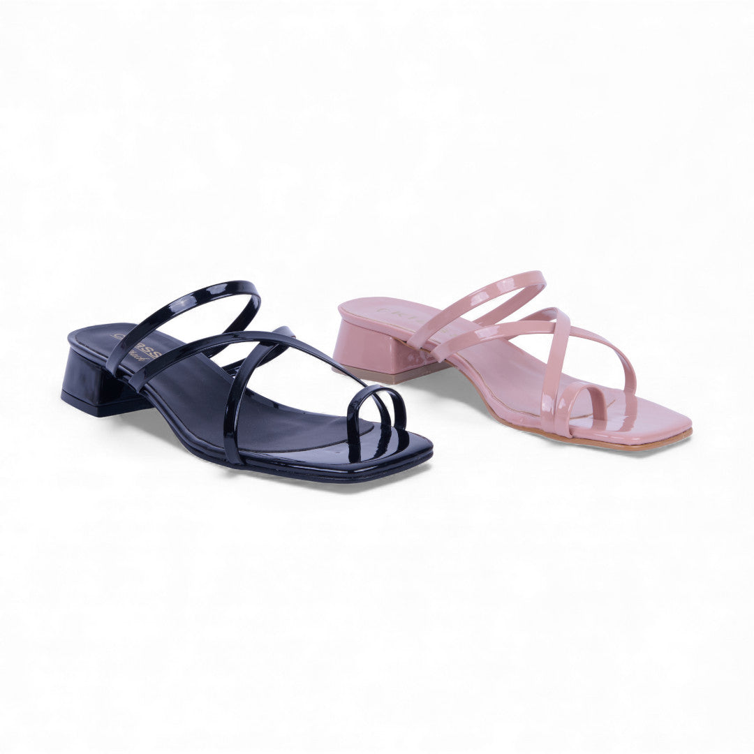 Dúo de sandalias de tacón de 4 cm con diseño de tiras elegantes. Plantilla sintética cómoda y suela resistente. Colores negro y rosa sofisticados y llamativos. Ideales para eventos casuales, salidas y ocasiones especiales con estilo moderno y femenino.