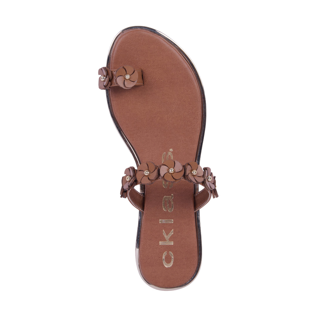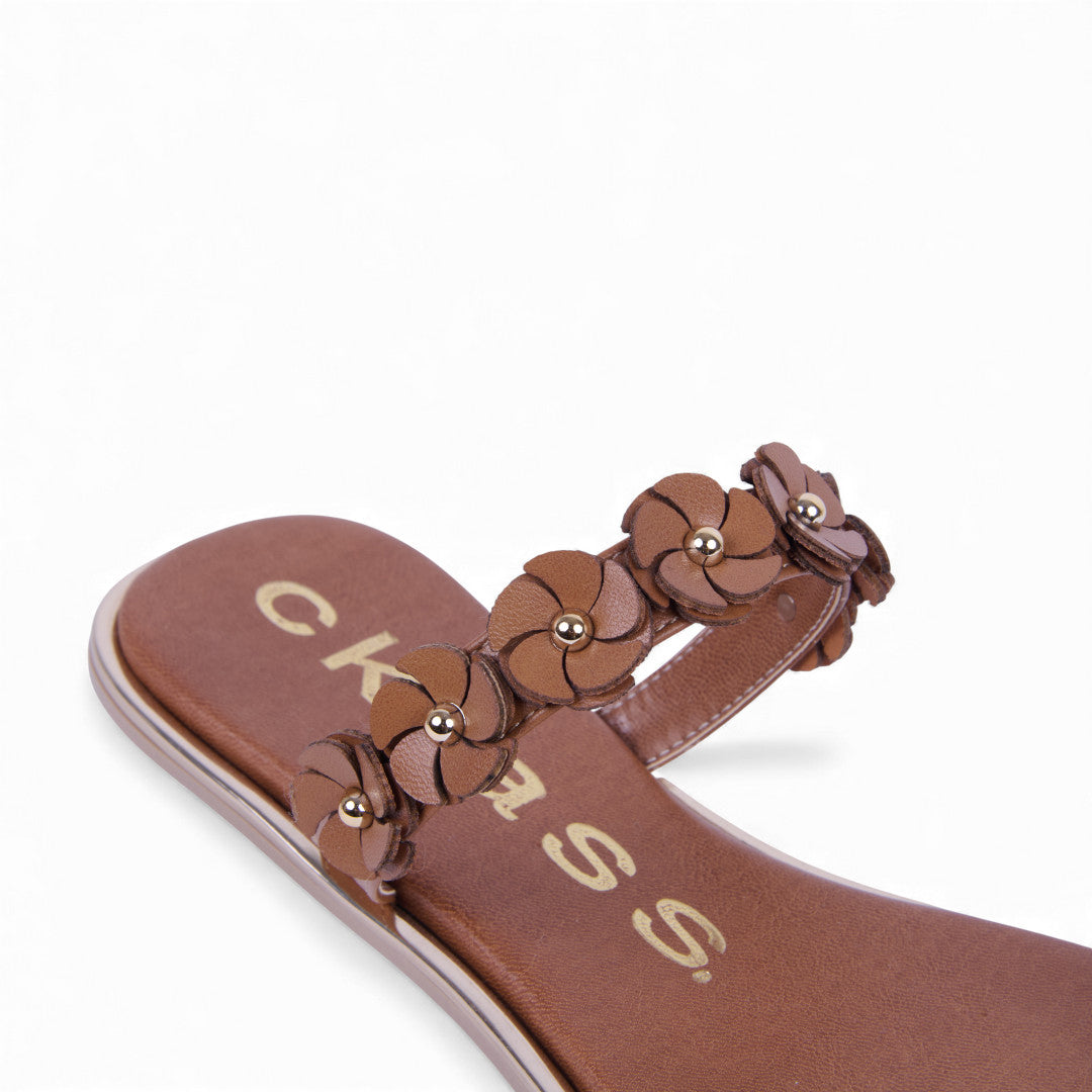 DÚO 523 SANDALIAS DE PISO MIEL Y HUESO CON ADORNO 21661