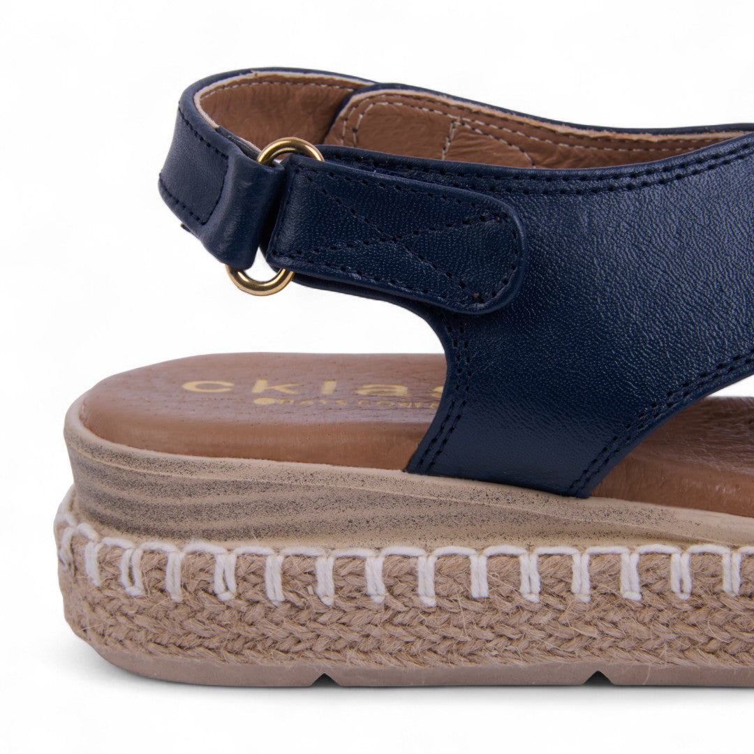 Sandalia de plataforma corrida marino de 5 cm con tiras anchas cruzadas, ajuste de velcro y detalle tipo yute. Cómoda, ligera y perfecta para looks frescos.