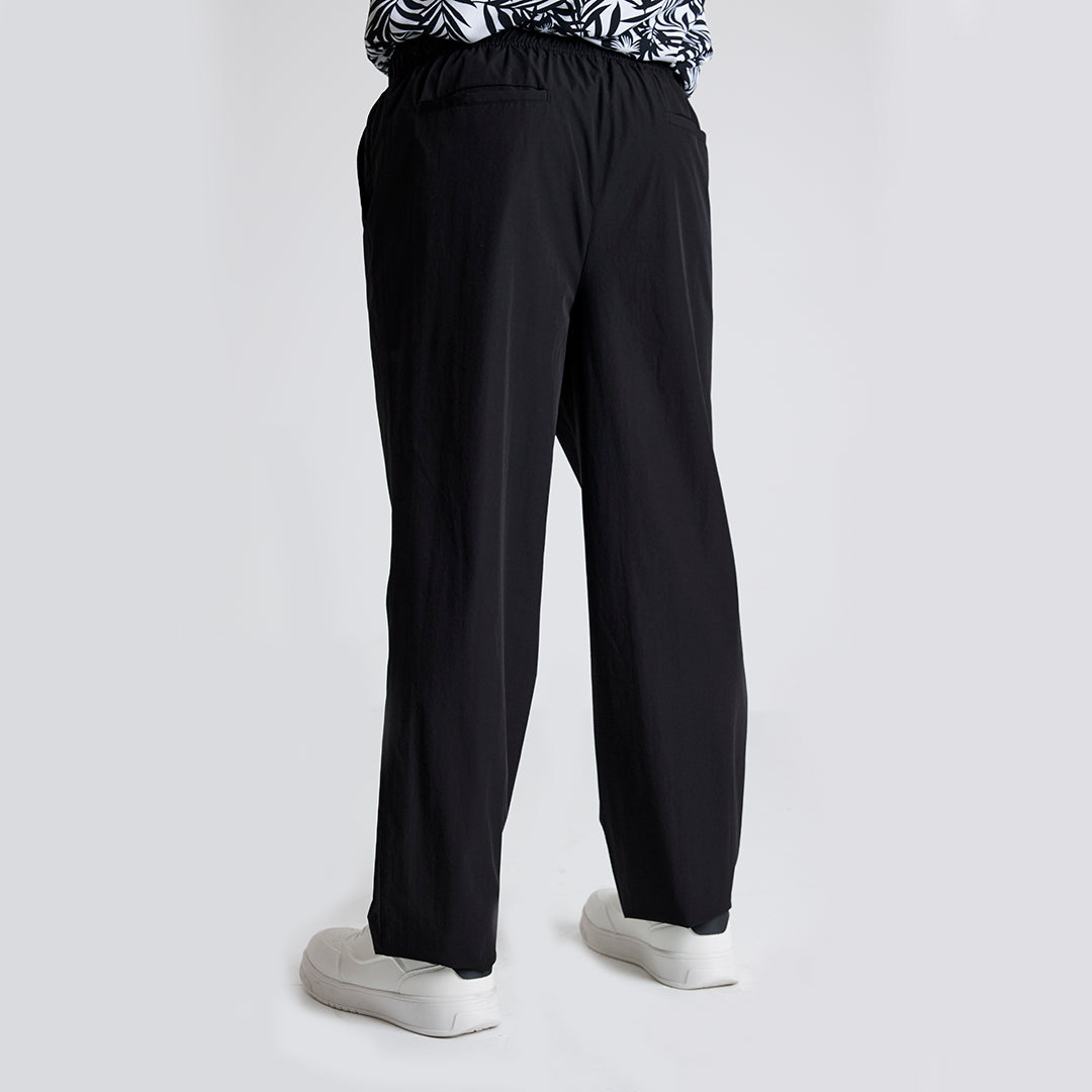 Jogger negro para hombre con cintura elástica y jareta ajustable. Corte recto con bolsillos delanteros que brindan funcionalidad. Confeccionado en poliamida con elastano, ofrece elasticidad, ligereza y confort. Ideal para looks casuales, deportivos o urbanos de uso diario.