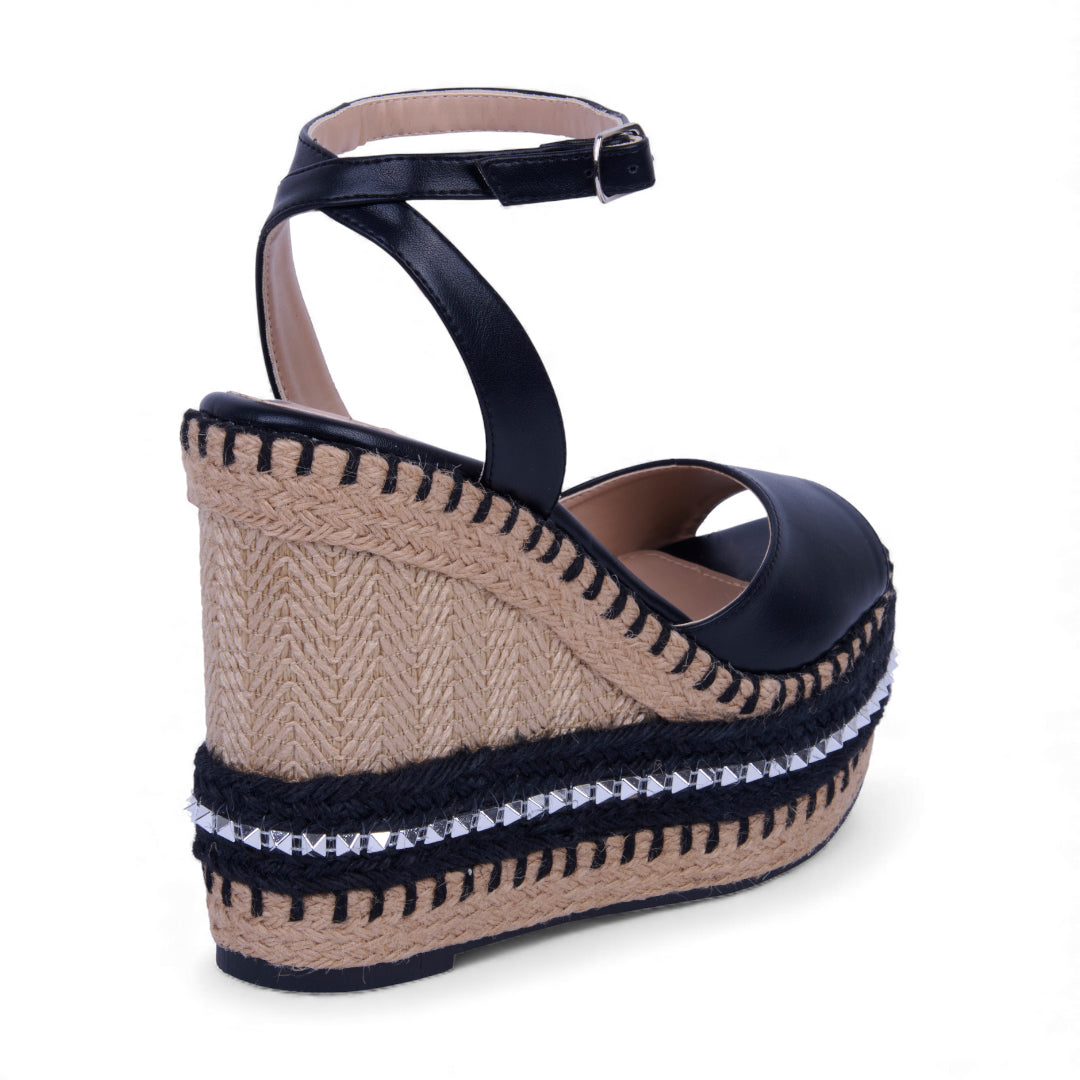 SANDALIA DE PLATAFORMA NEGRO CON DETALLE 25108