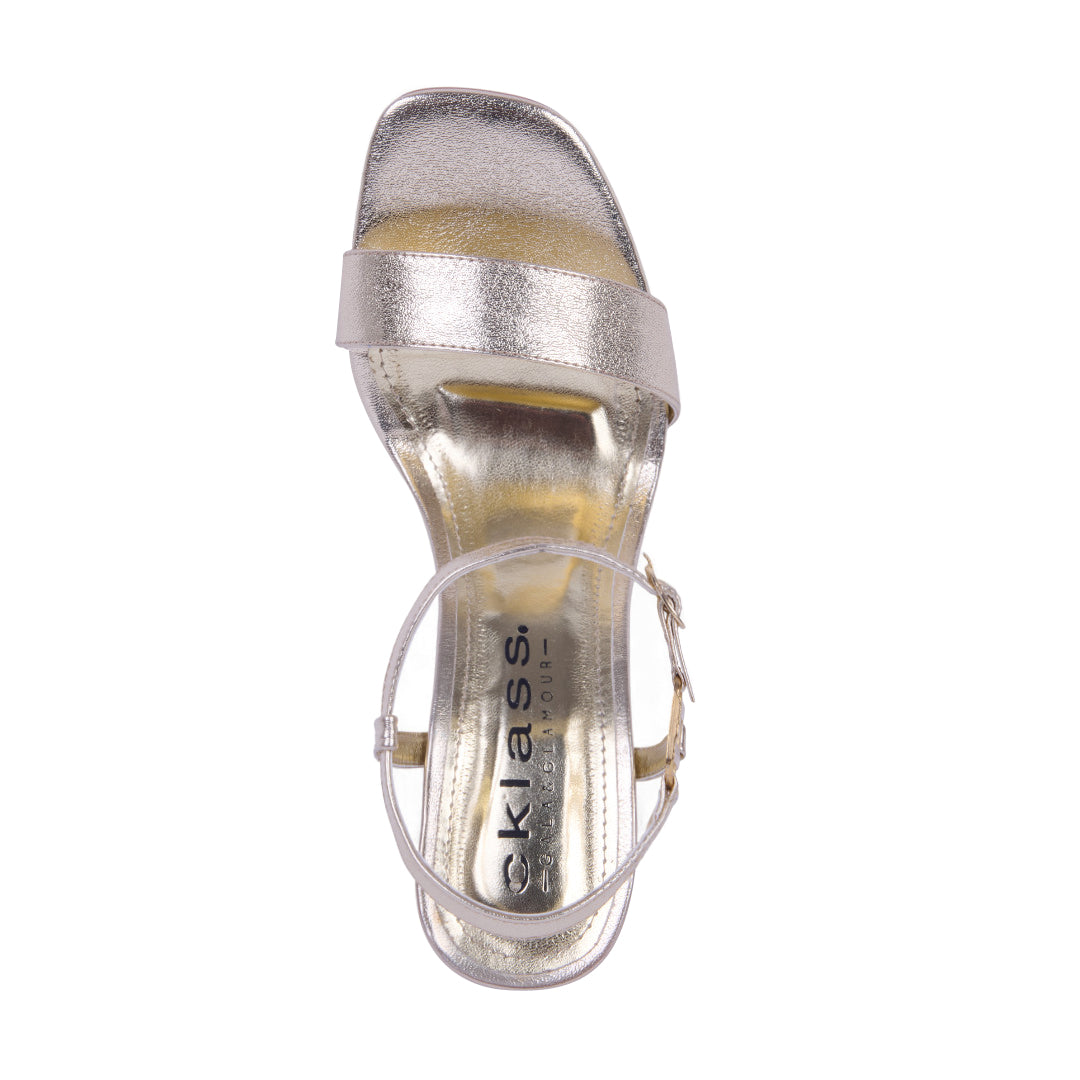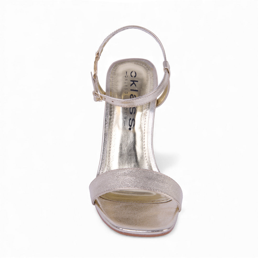 SANDALIA TACÓN ORO HEBILLA DECORATIVA 08666
