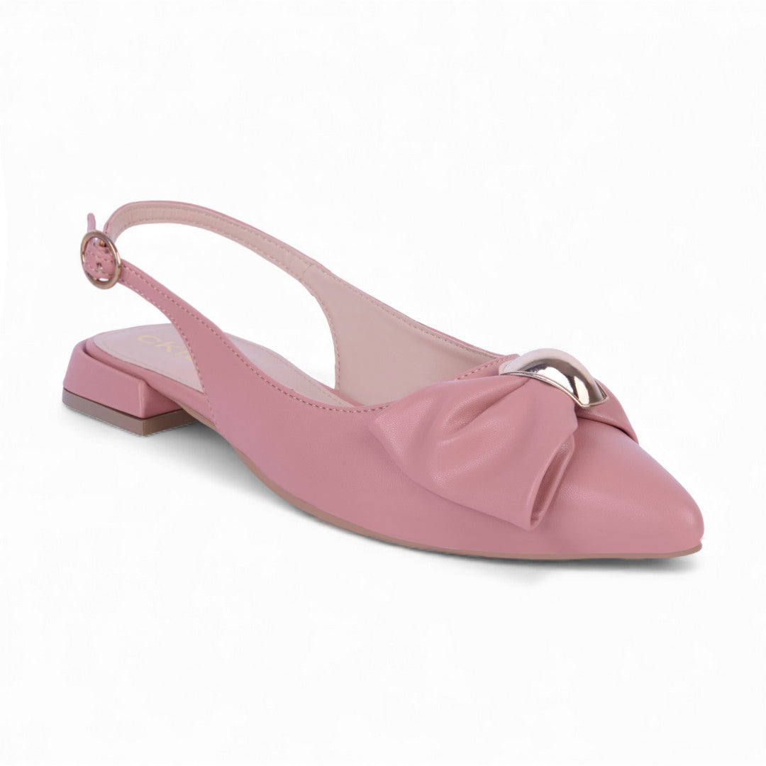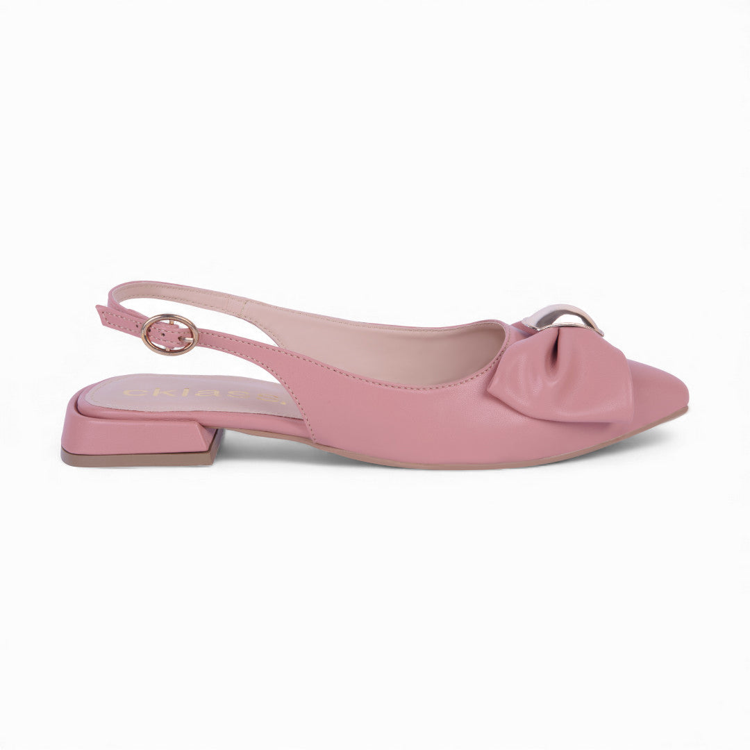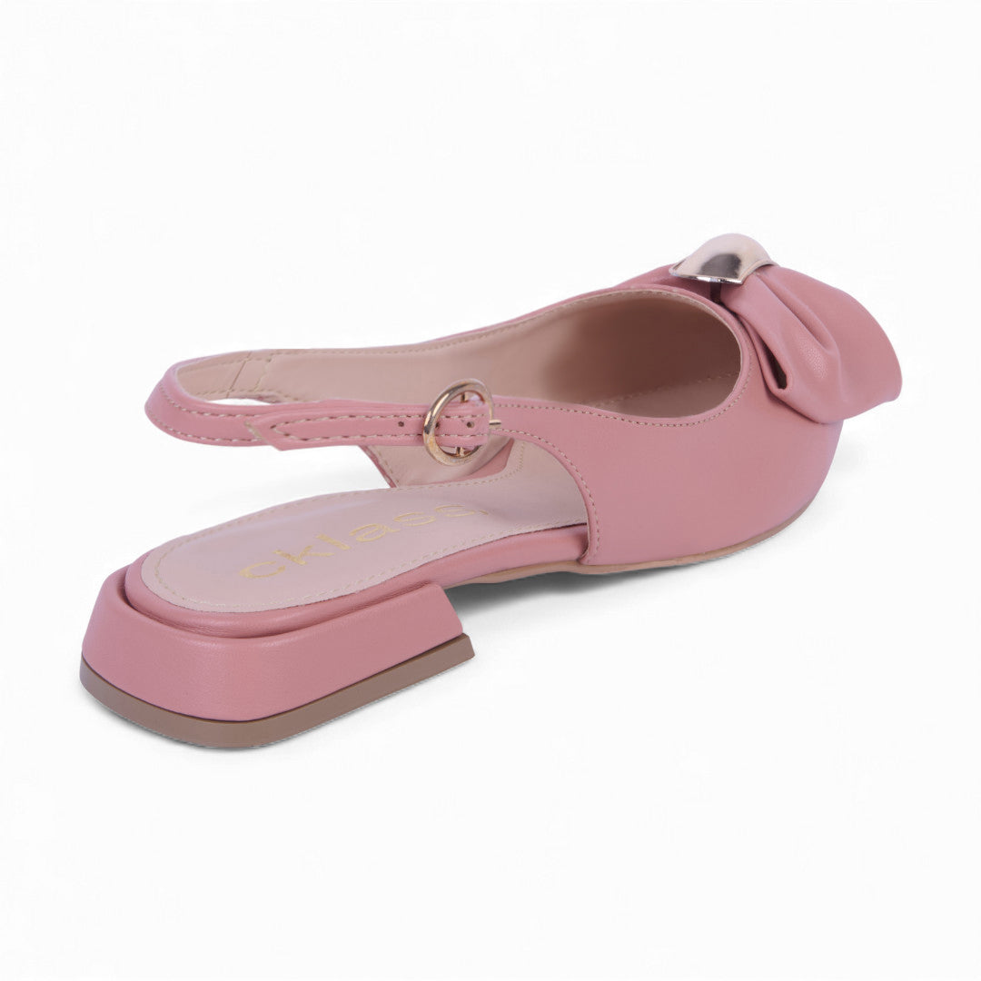Zapatilla de tacón bajo de 2 cm, destalonada, con elegante adorno de moño y hebilla dorada al frente. Fabricada en material sintético tipo piel con acabado brillante y plantilla sintética que brinda comodidad. En color blanco, perfecta para complementar looks delicados, románticos o de oficina con estilo sofisticado.