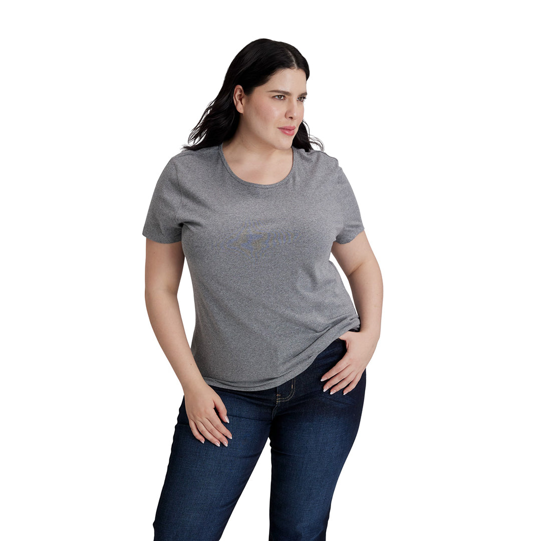 Dúo pack de playeras para mujer en tonos gris y blanco con cuello redondo terminado en bies de la misma tela. Manga corta y corte regular que brindan comodidad y versatilidad. Confeccionadas en mezcla de algodón y poliéster, ideales para uso diario.