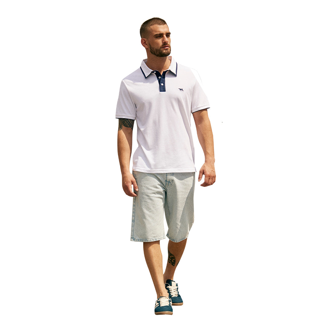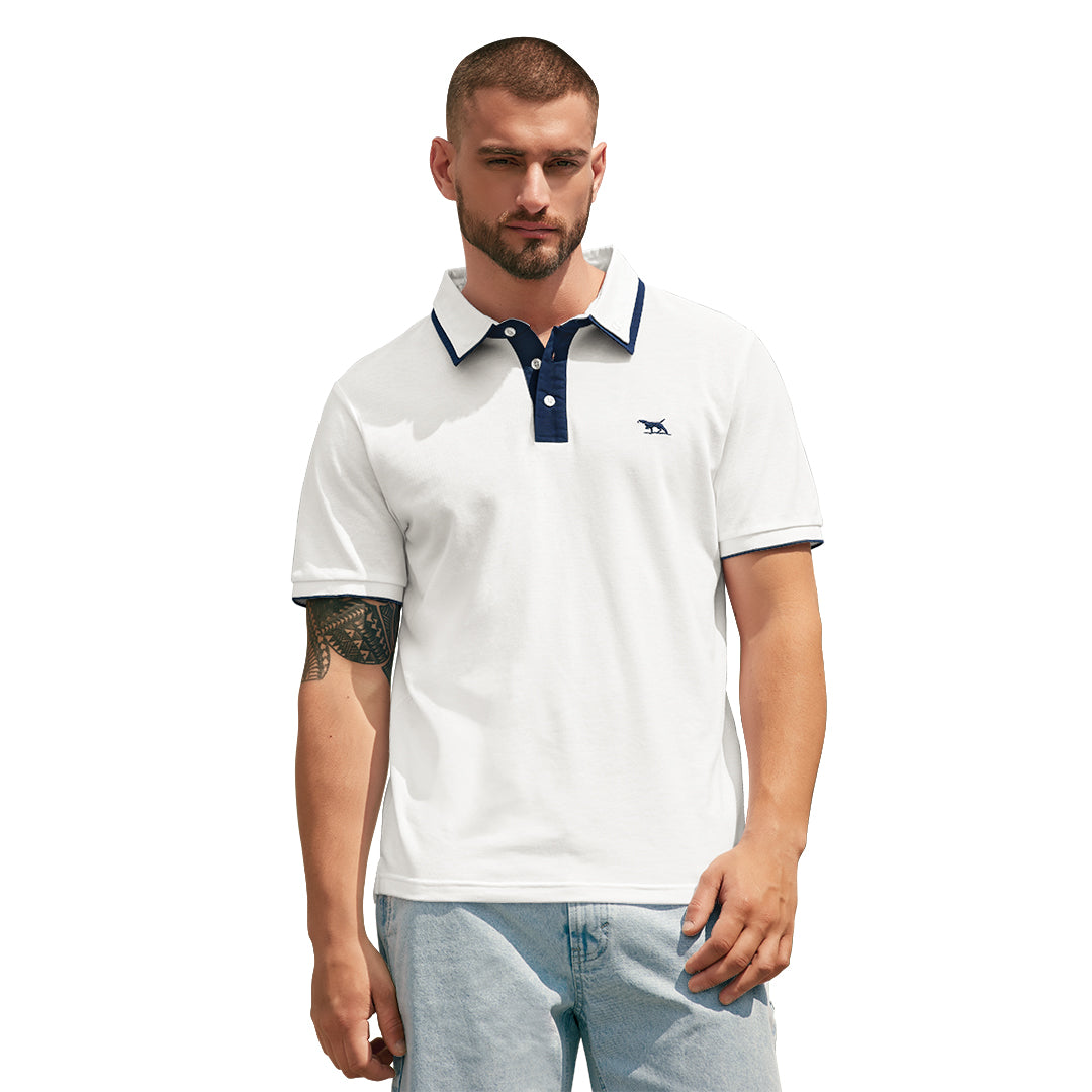 Playera polo blanca con contrastes en cuello y aletilla; ligera, moderna y perfecta para un estilo pulido y casual.
