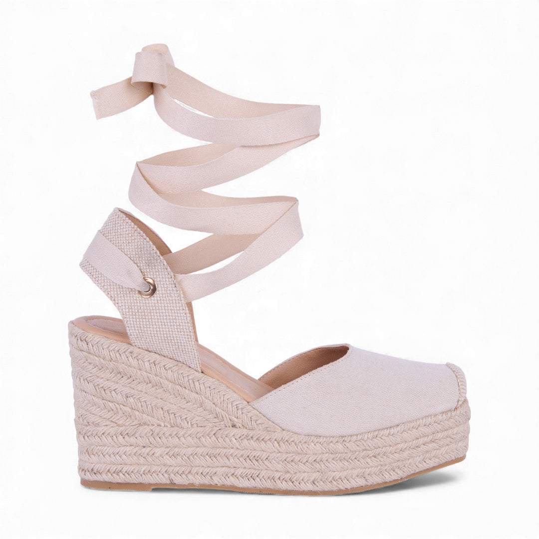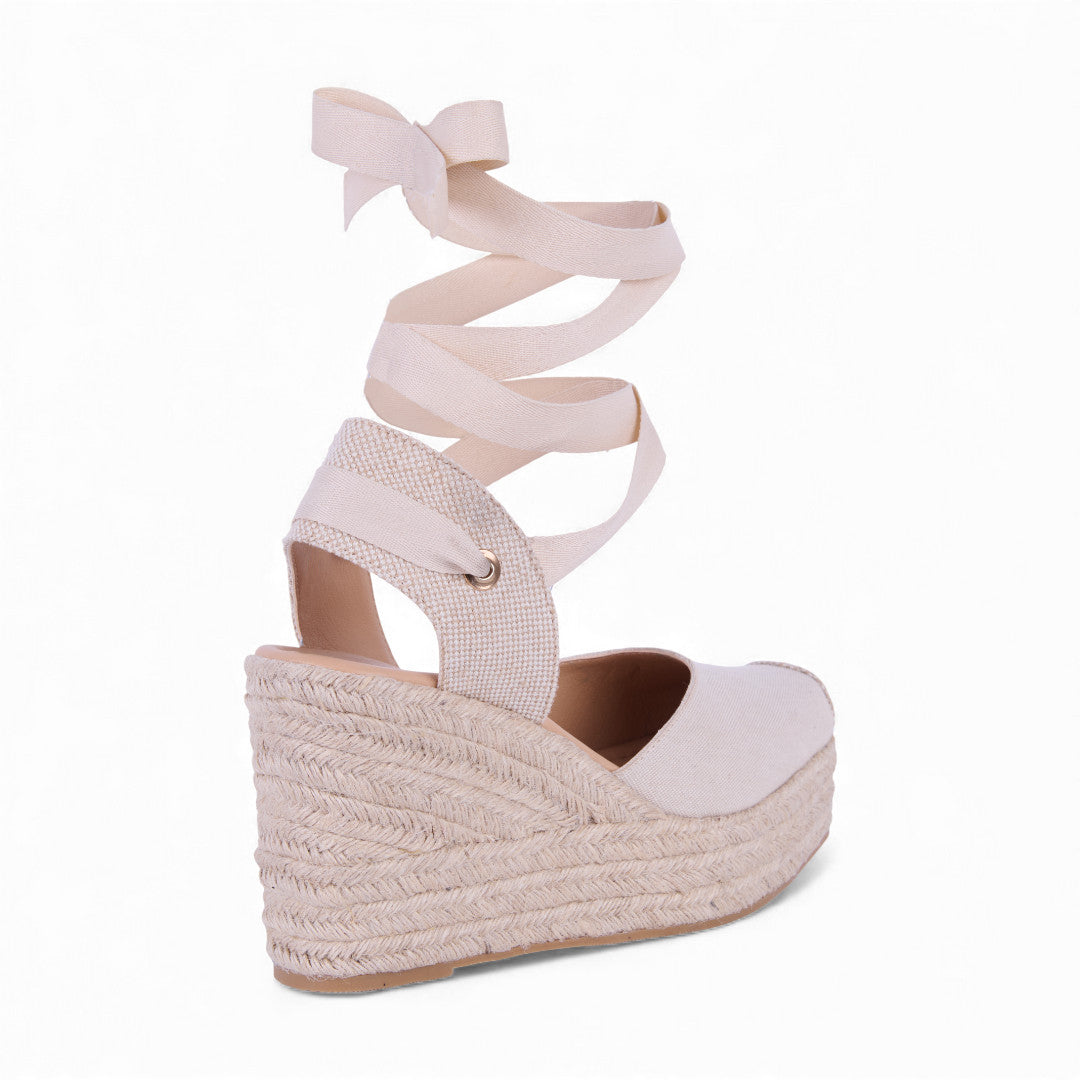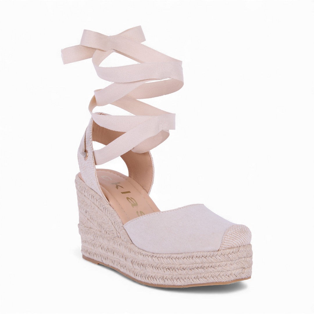 ALPARGATA DE PLATAFORMA HUESO CON CINTAS 32241