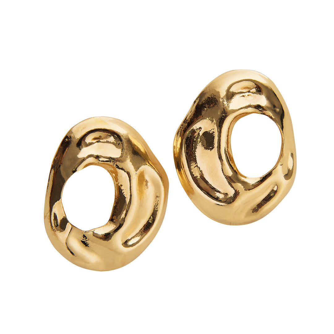 Aretes dorados redondos tamaño grande con textura; sofisticados y modernos para realzar cualquier outfit.