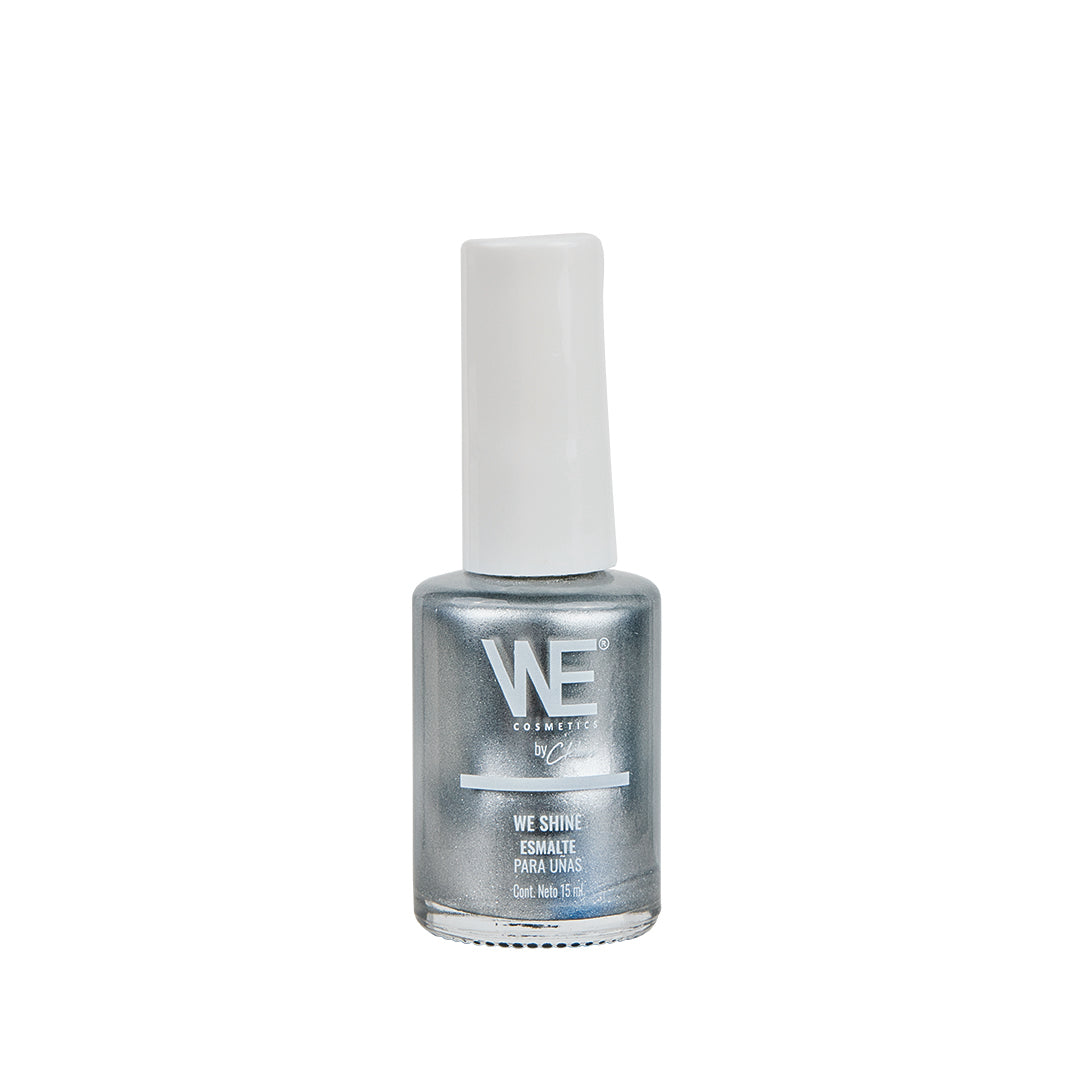 Esmalte para uñas tono plata con acabado brillante y elegante. Ideal para looks modernos y sofisticados. De fácil aplicación y secado uniforme para uso diario o eventos especiales.