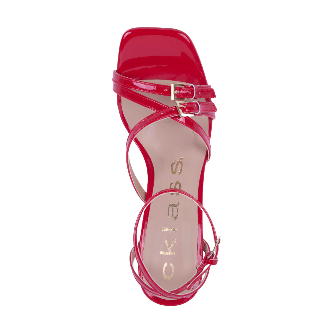 SANDALIA DE TACÓN ROJO CON TIRAS 69929