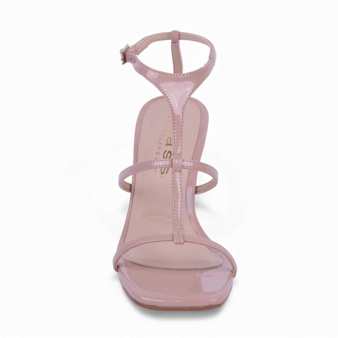SANDALIA TACÓN BEIGE TIRAS TIPO "T" 08660