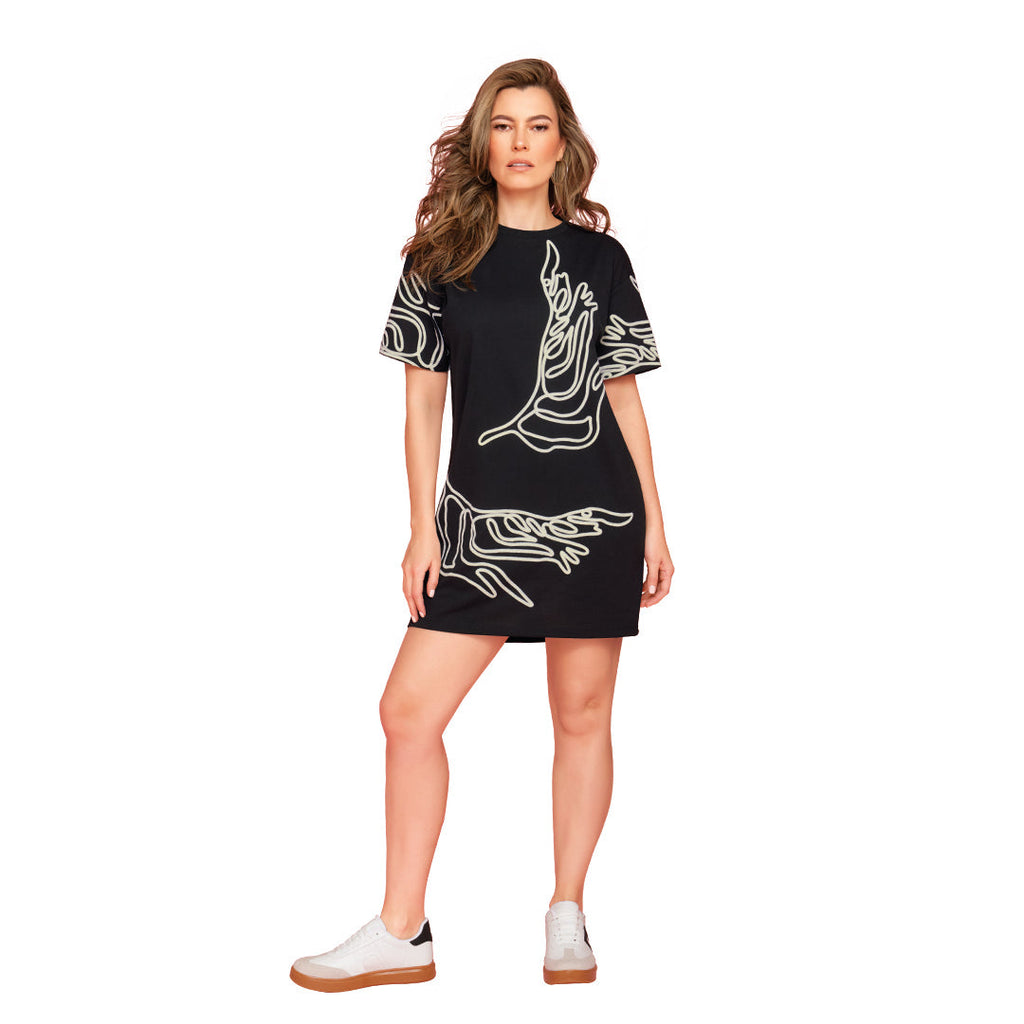 VESTIDO NEGRO ESTAMPADO TIPO CAMISETA OVER 54625