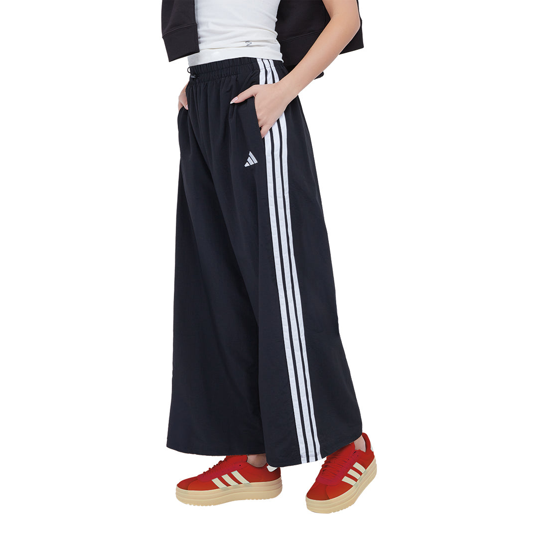 Pants Adidas Essentials negro para dama, con ajuste holgado y cintura elástica que brinda movilidad y comodidad. Incluye bolsillo trasero con solapa para seguridad y practicidad. Fabricado en poliamida ligera, ideal para entrenar, caminar, viajar o crear outfits athleisure versátiles y modernos.