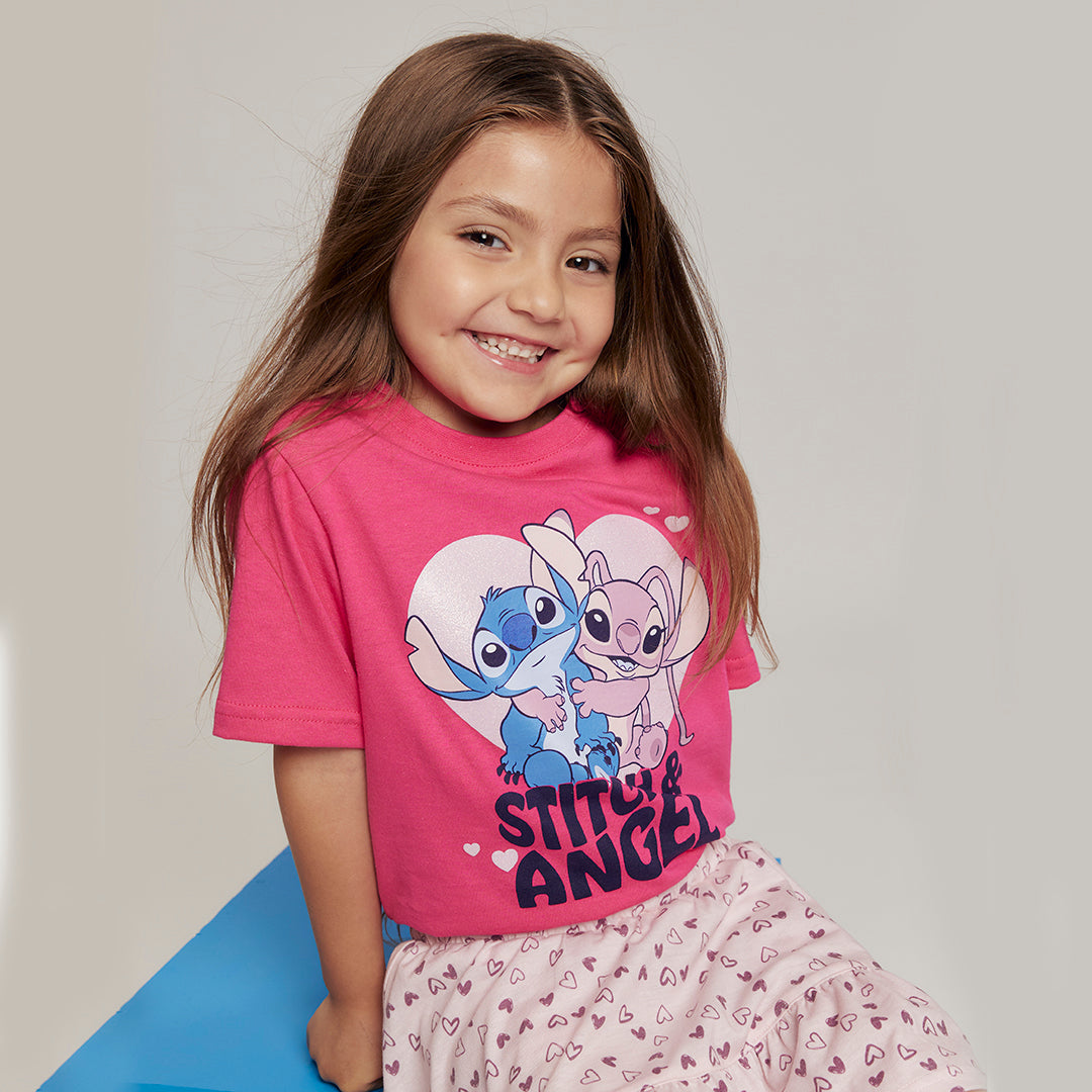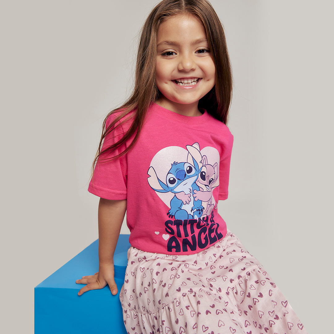 PLAYERA DE NIÑA ROSA CON ESTAMPADO DE STITCH 32303