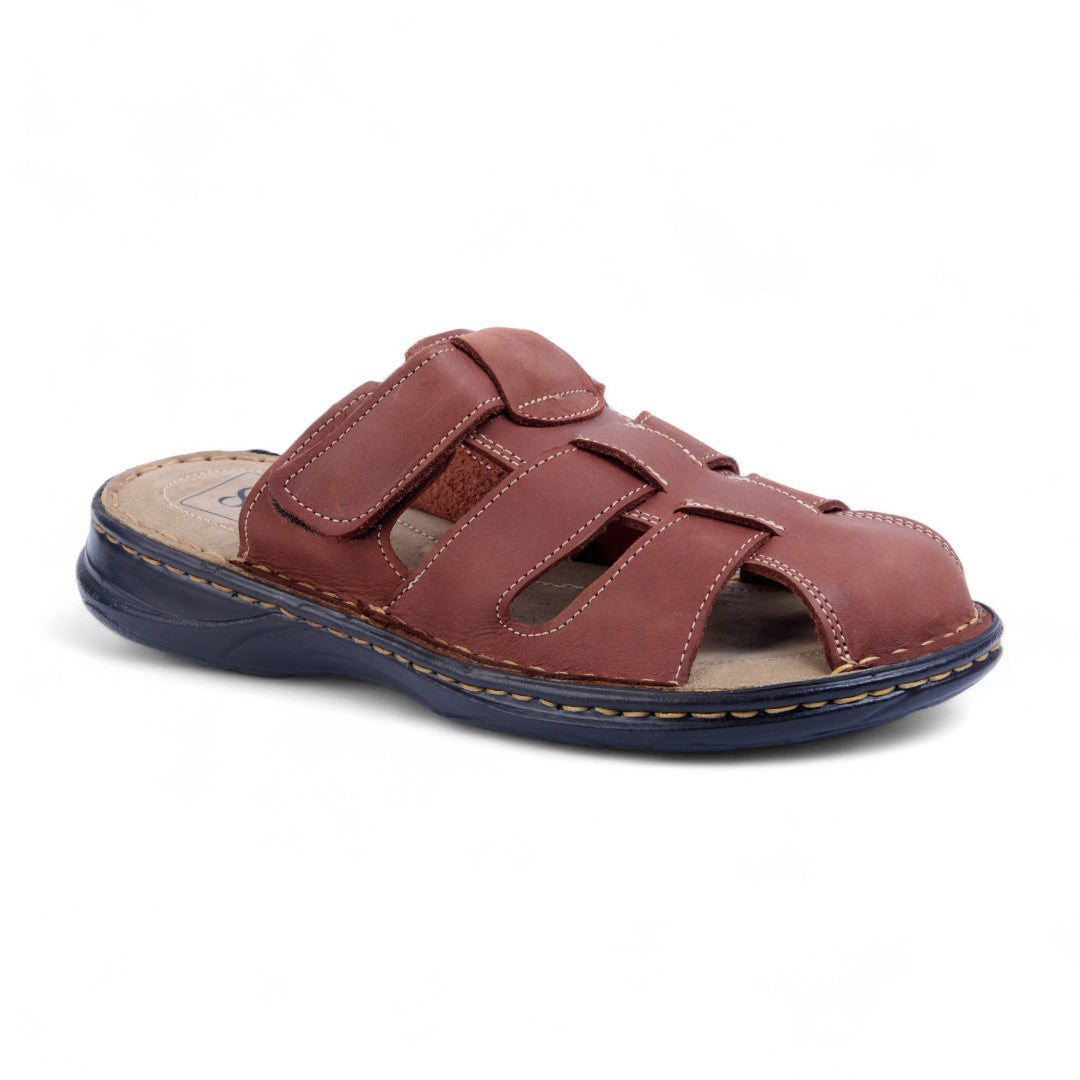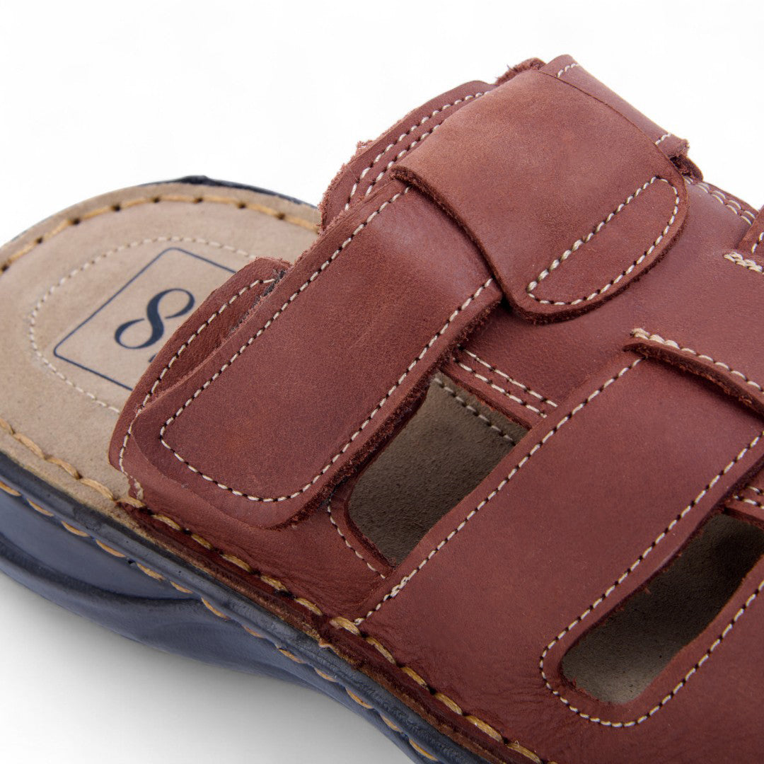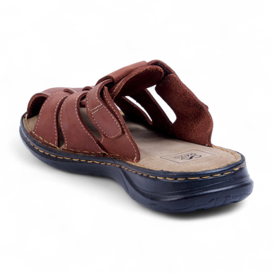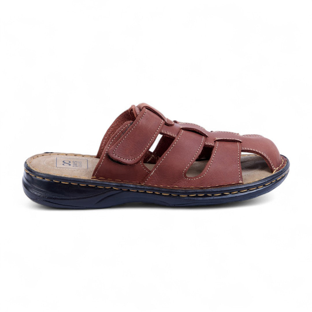 Sandalia de piso destalonado color miel con suela cosida a mano, plantilla acojinada y contactel con plantilla de piel. Plantilla vacuno para mayor comodidad. Ideal para outfits casuales, paseos y eventos con estilo femenino y sofisticado.